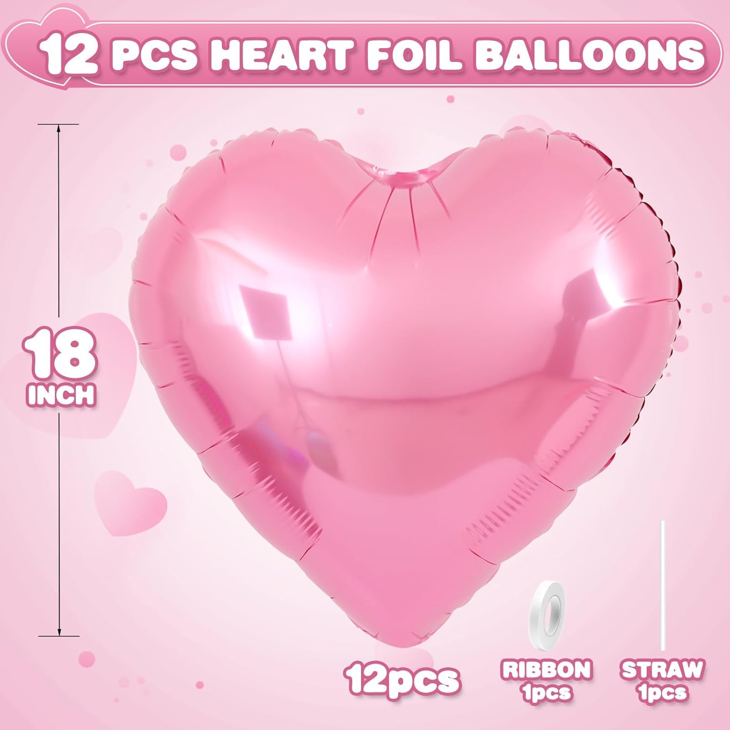 • Included Components : 12pcs 18Inch pink heart foil balloons, 1pc straw