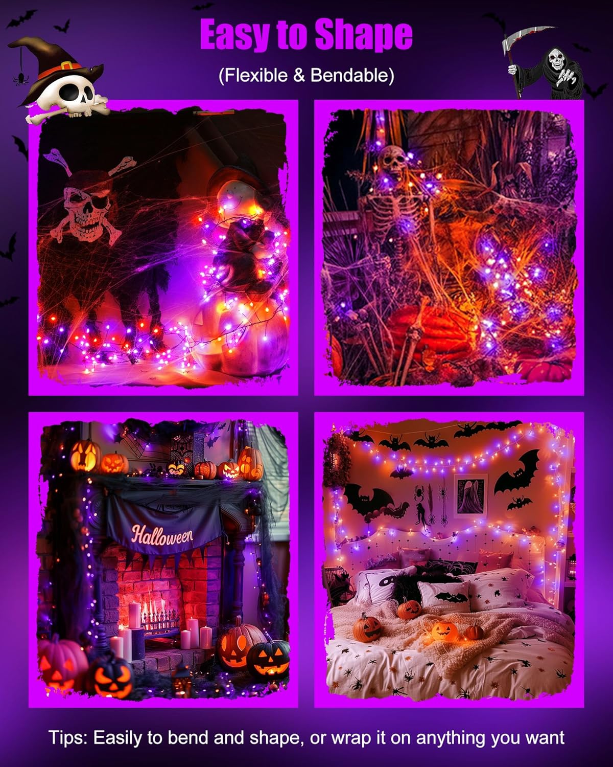 • Flexible Silver Wire: The starry moon fairy lights are made of a soft bendable silver wire.Flexible to wind this copper wire LED fairy light around the dried or fresh flowers or pumpkin, or wrapping the potted dead branches, or decorating the skeleton, great for halloween, haunted house