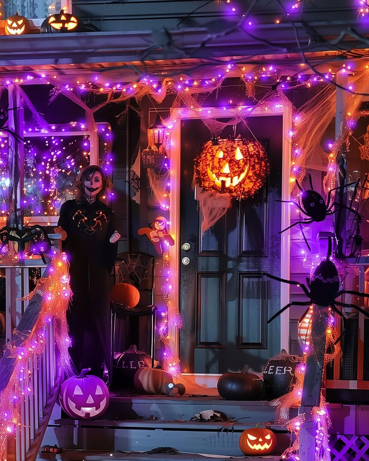 Fairy Lights Battery Operated, Twinkle String Lights Waterproof Silver Wire 5 Feet 60 Led Firecracker Starry Lights for DIY Wreath Party Bedroom Mason Jar Indoor Halloween Decoration, Orange & Purple