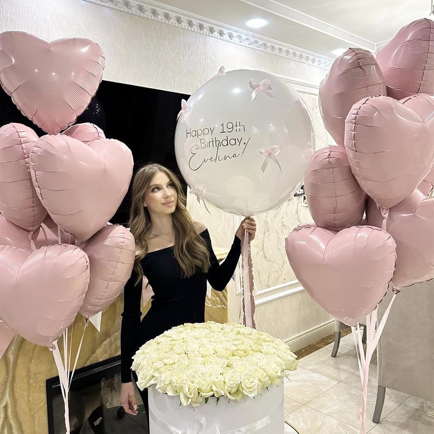 • 【12PCS HEART BALLOONS】Package include 12pcs 18Inch baby pink heart foil balloons,1pc straw.Large enough to help you better decorate your party.