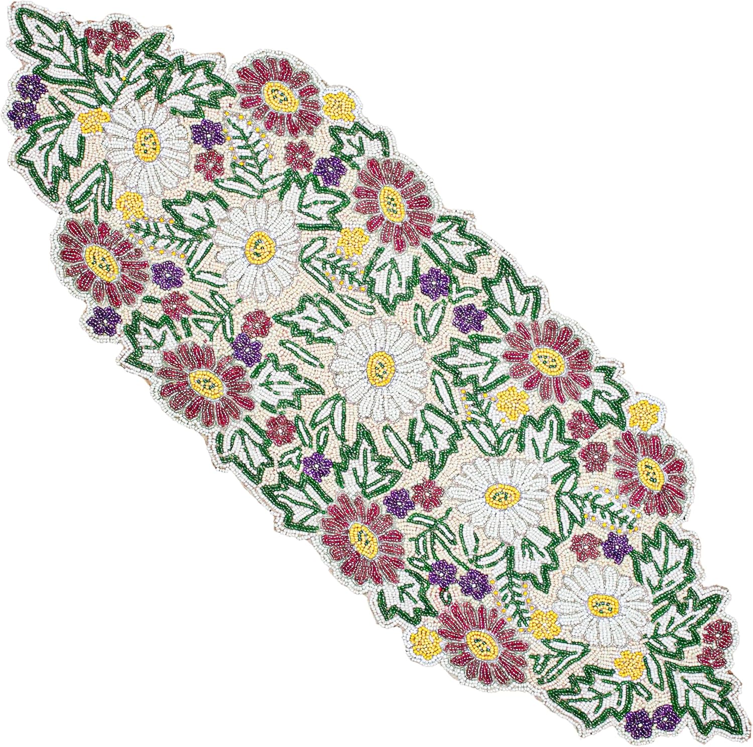 Luxury Beaded Table Runner - 13x36 Inches Handcrafted Spring Floral Design with Glass Beads & Polyester Back - Elegant Table Decor for Dining, Coffee Table & Events (Multi) - CLEENTABLE