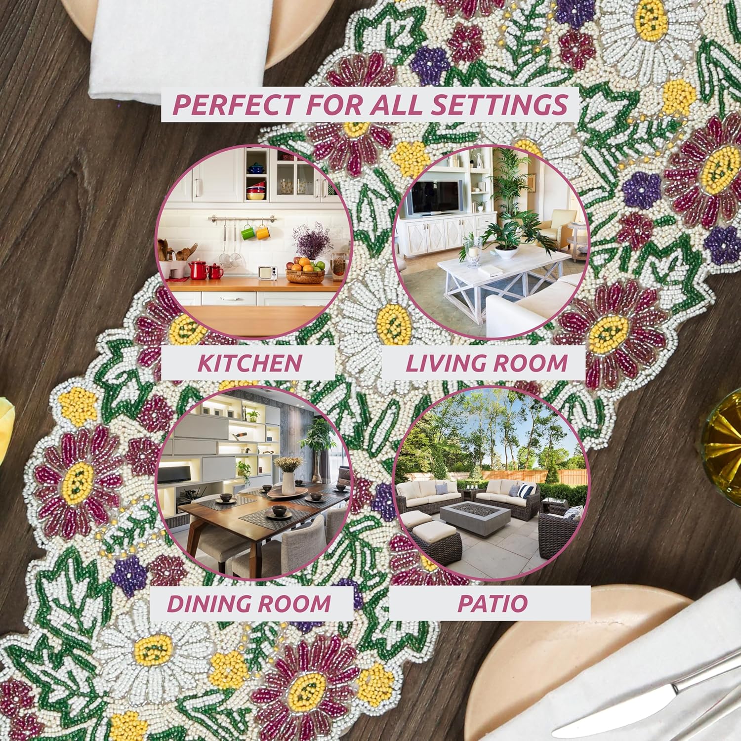 • ✅ CRAFTED FROM GLASS BEADS & POLYESTER: Premium hand-beaded runner with sturdy backing offers durability and luxury shine.