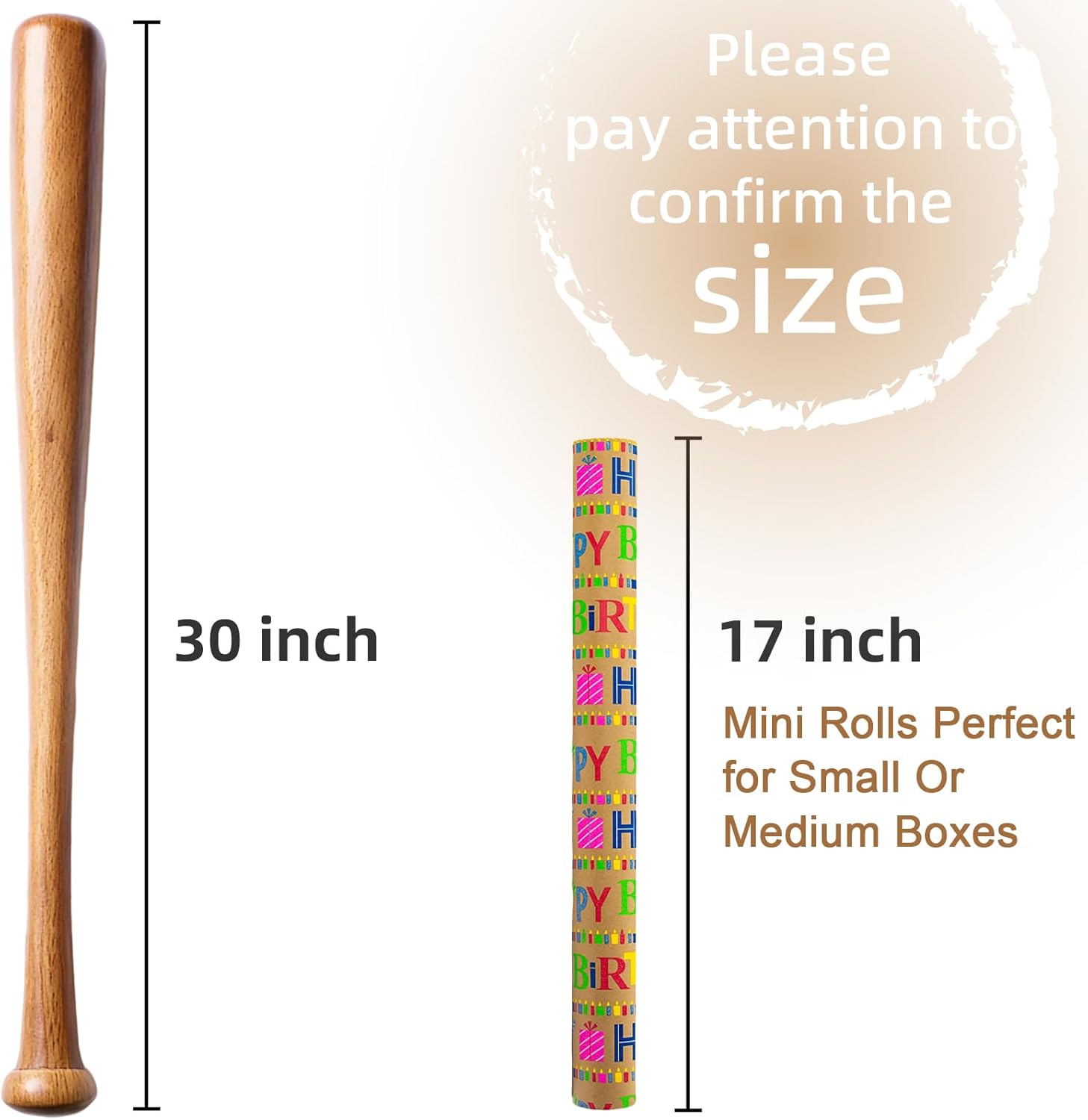 • BIRTHDAY WRAPPING PAPER ROLL: Kraft thick baby gift wrap paper comes with a roll 17" x 33ft, providing you with a total of 46.8 square feet of paper, enough to wrap SMALL and MEDIUM gifts. Please confirm gift size BEFORE placing order!
