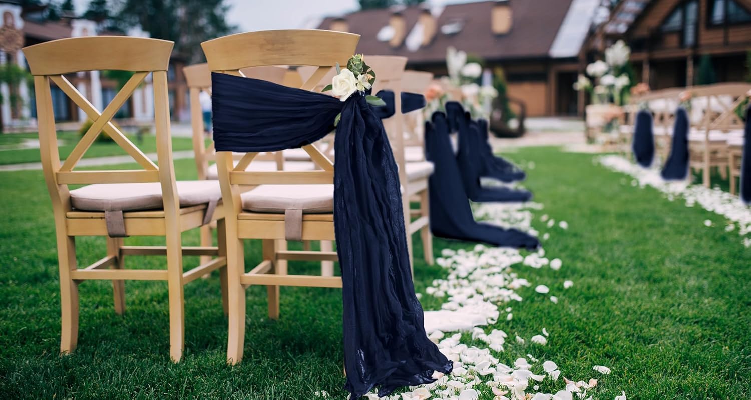• 【Delicate Craftsmanship】Navy Blue cheesecloth chair sashes adopt unique pleated workmanship, and the overall appearance is simple and elegant, creating an elegant and romantic atmosphere easily. The edges are carefully stitched to keep a perfect flowing condition, will not get broken or loose easily, can serve you for a long time