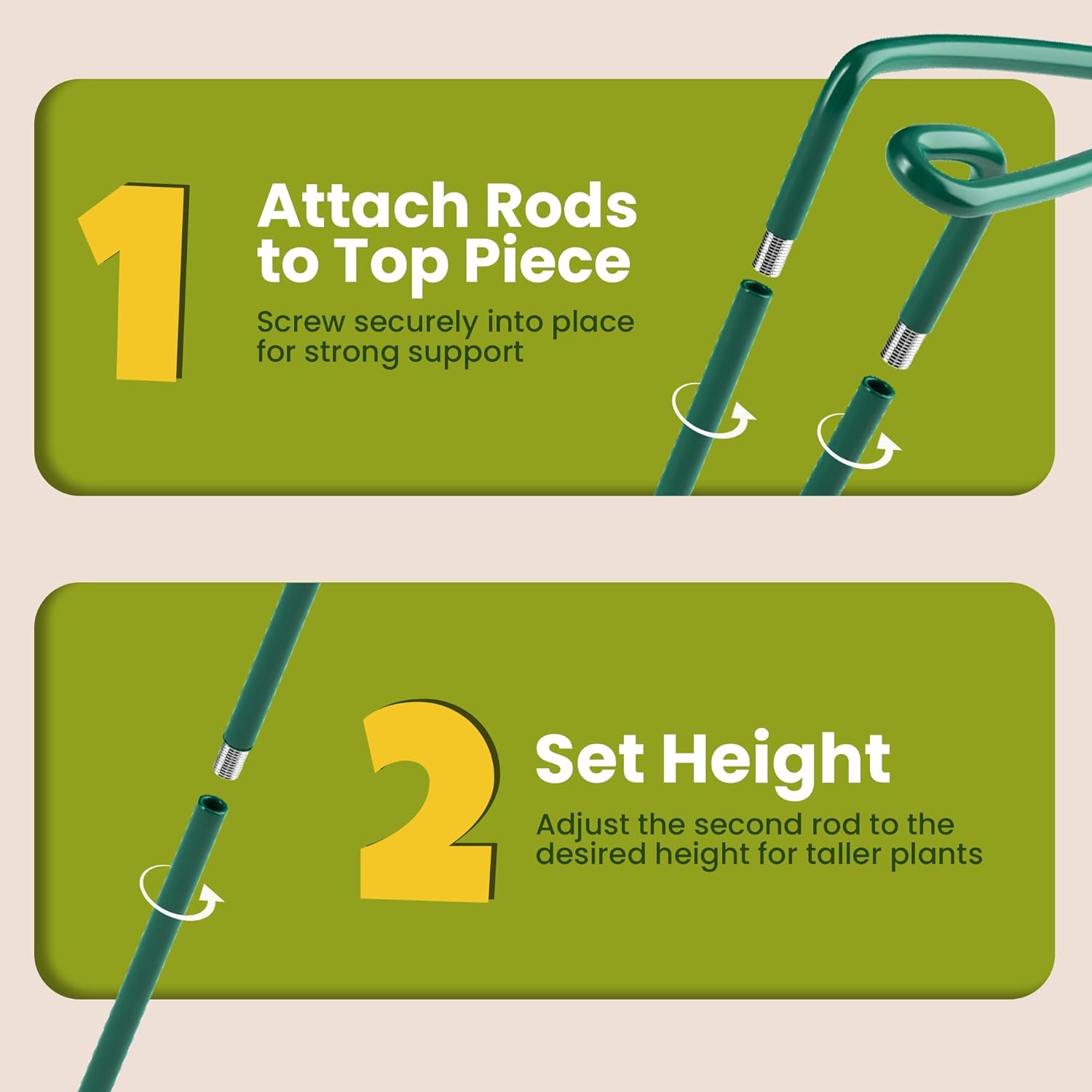 • Sturdy and Easy to Use: These plant supports are guaranteed to hold your plants straight, made with premium-grade, rustproof steel core and plastic powder coating for enhanced sturdiness. Each stake can be adjusted to 16" or 24", allowing for customized plant support.