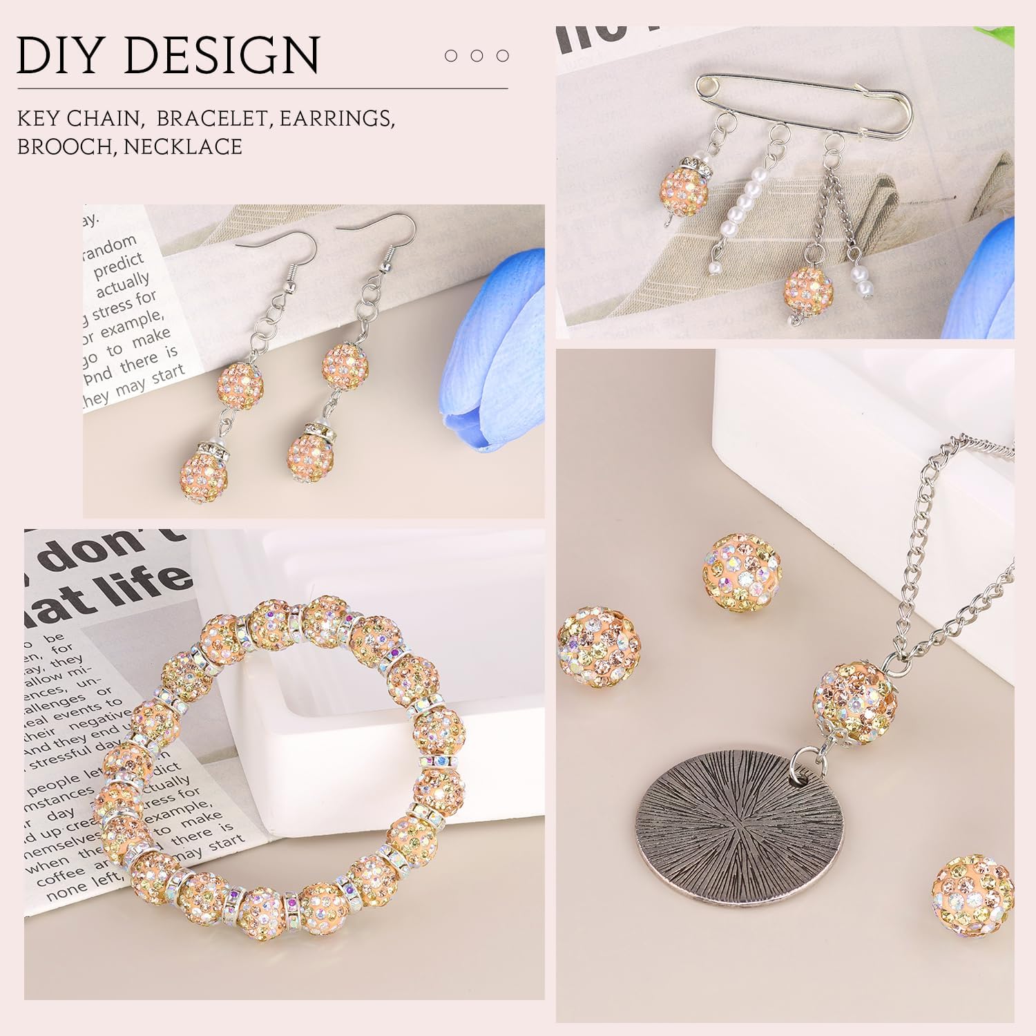 100pcs 10mm Rhinestone Beads for Jewelry Making, Light Peach AB Shiny Round Shamballa Disco Beads Bulk, Sparkle Crystal Clay Christmas for Bracelet Baseball Necklace Earring Crafting and DIY