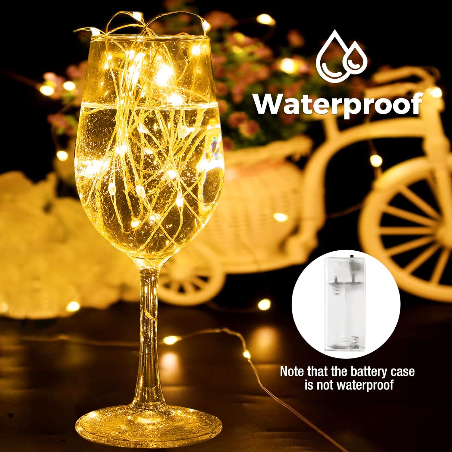 • Waterproof and Safe to Touch: With waterproof design, copper wire fairy lights are suitable for indoor/outdoor use, (battery box is not waterproof) LED string light has low energy consumption, touch safe and reliable, It will not overheat for a long time