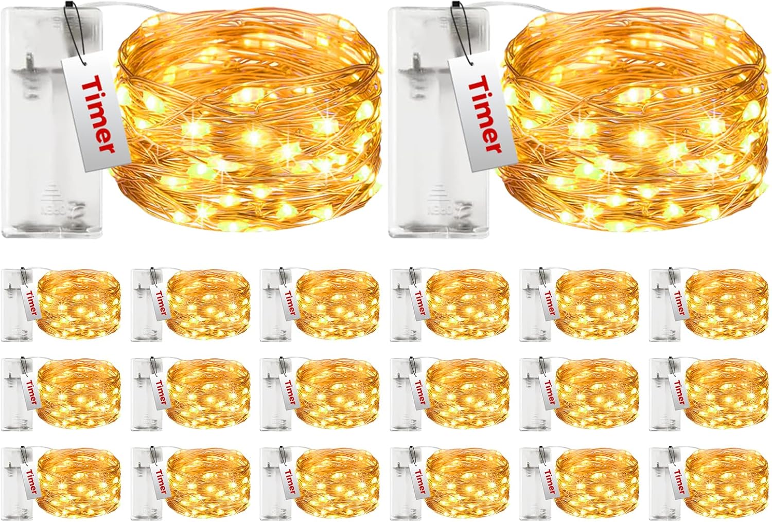 • 20 Pack Fairy Lights Battery Operated: Each small string lights is 10 ft/3 m long with 30 bright LED beads, emits a warm white light, enough quantity to decorate stair rail, tree, fencs, tent, make your bedroom, room, dorm,party more romantic and softer