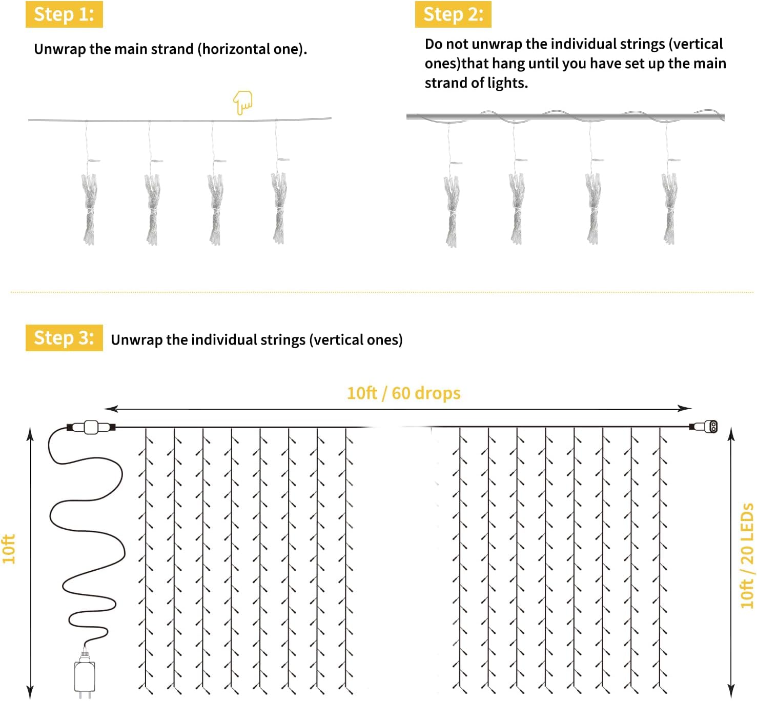 • Connectable - 1 window lights strings connectable to cover a larger area. Please only keep the controller on the first set when strings are connected so that you can control these curtain fairy lights at the same time with one remote.
