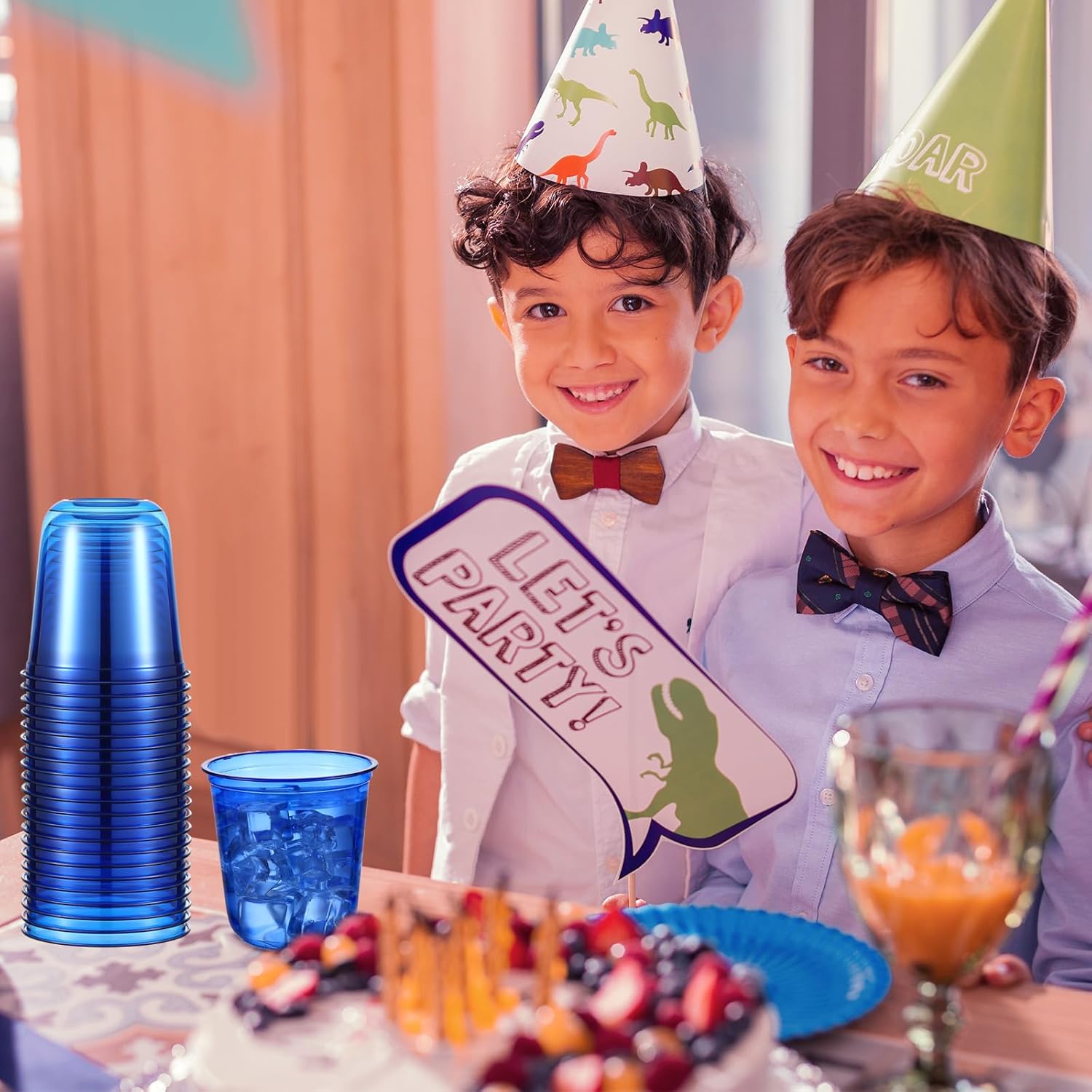 Disposable Stemless Glasses 12oz Crystal Plastic Wine Glasses Clear Classic Pet Cup for Meeting Weddings Birthdays Cocktail Christmas Party Supplies(Blue,50 Pcs)