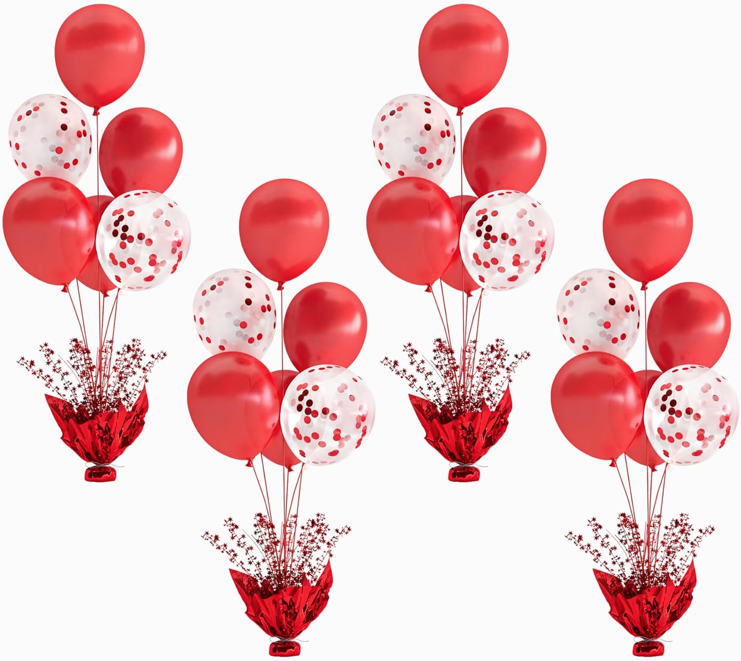 • Red Balloon Centerpiece Kit Includes: 4 reusable red balloon stands for table (including 4 red foil star spray bases, 12 sticks, 12 stick connectors, and 24 cups) and 24 12-inch latex balloons, providing everything you need to create stunning table centerpieces