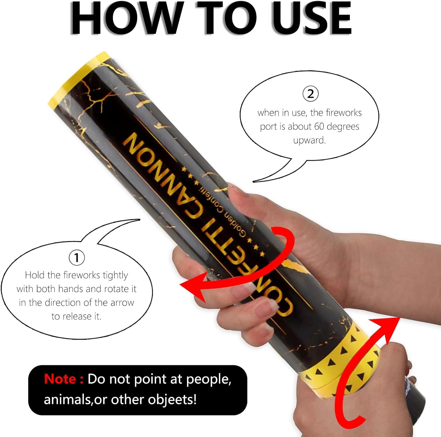 • 【Gold Confetti Cannon】Our gold confetti cannon releases gold confetti, immediately creating a party atmosphere. Whether you are celebrating a special occasion or just for fun, this gold paper cannon will definitely bring smiles and laughter.