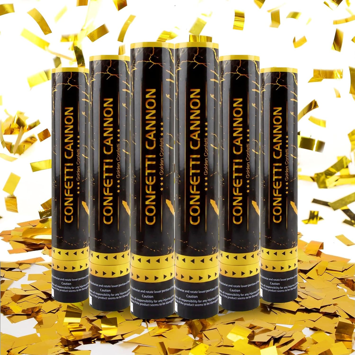 6 Pack Gold Confetti Poppers, 12 Inch Confetti Cannon Party Poppers Shooters for Birthday, Wedding, Graduation, Anniversary, Parties, Christmas, New Year's Eve