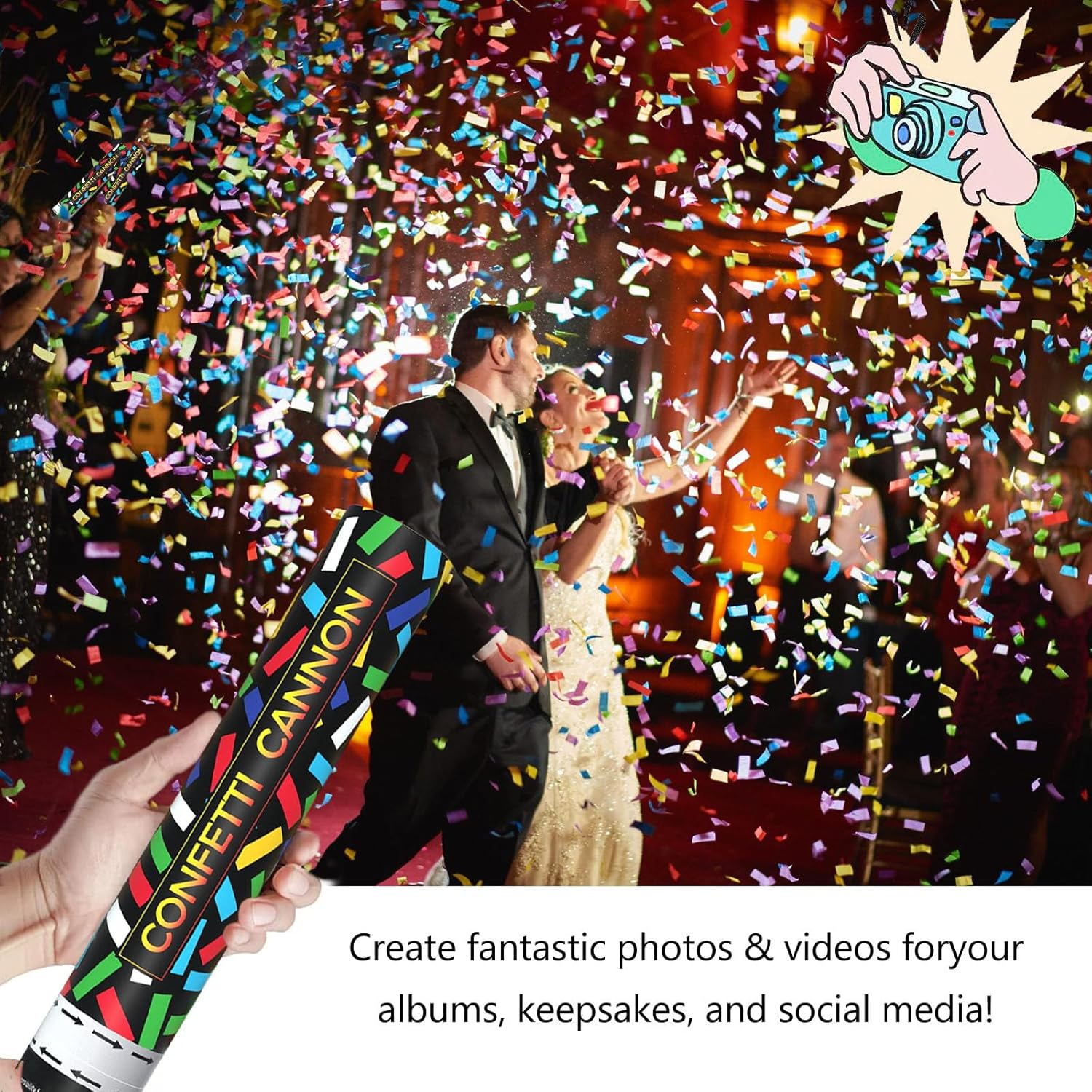 • 【Colorful Confetti Cannon】Our colorful single party confetti cannon releases colorful confetti, immediately creating a party atmosphere. Whether you are celebrating a special occasion or just for fun, this colorful paper cannon will definitely bring smiles and laughter.
