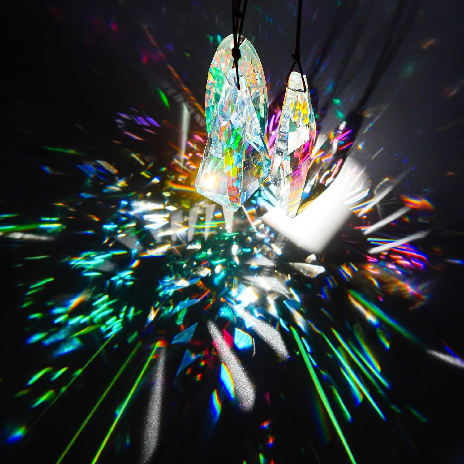 • Sparkling Window Prisms: These 4.5'' crystal prisms suncatchers feature beautiful AB colors that refract sunlight into a mesmerizing rainbow , creating a captivating visual display in your home or garden.