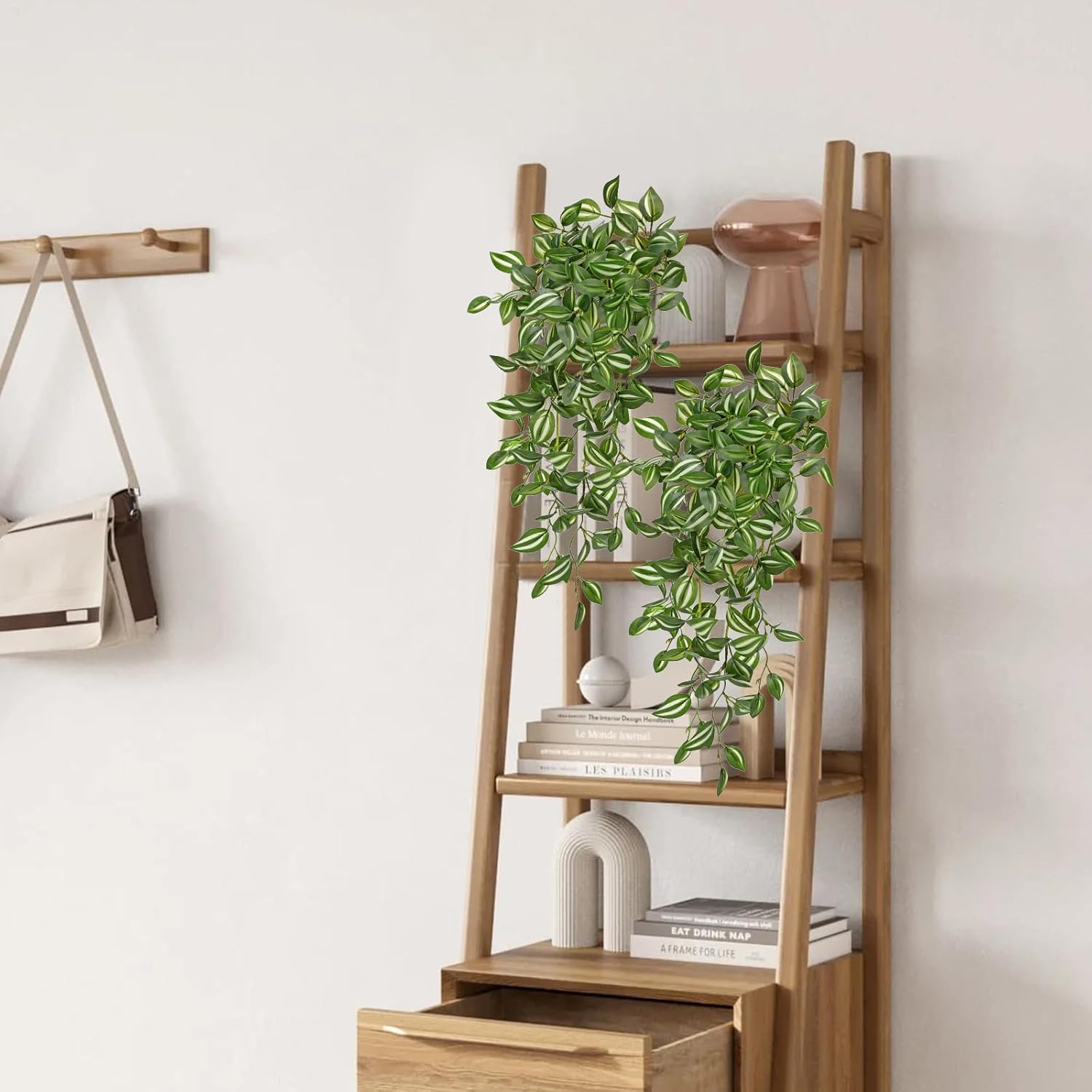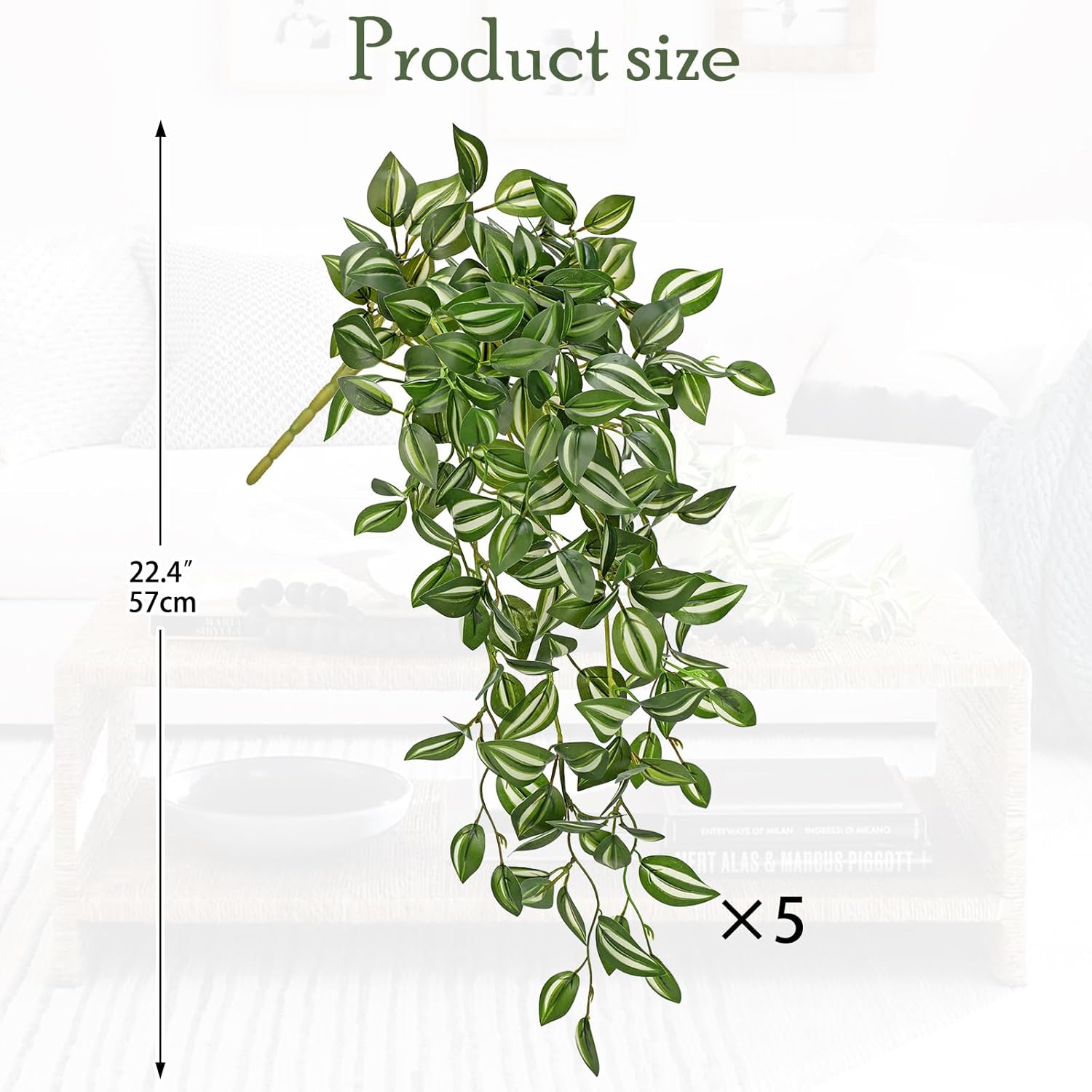 • 🌱Lifelike & Vibrant - Each order includes 5 pcs Wandering Jew fake hanging plants. The plants lengths are 22". They boast a lifelike appearance with vibrant colors and realistic details, adding a touch of greenery to your small space year-round.