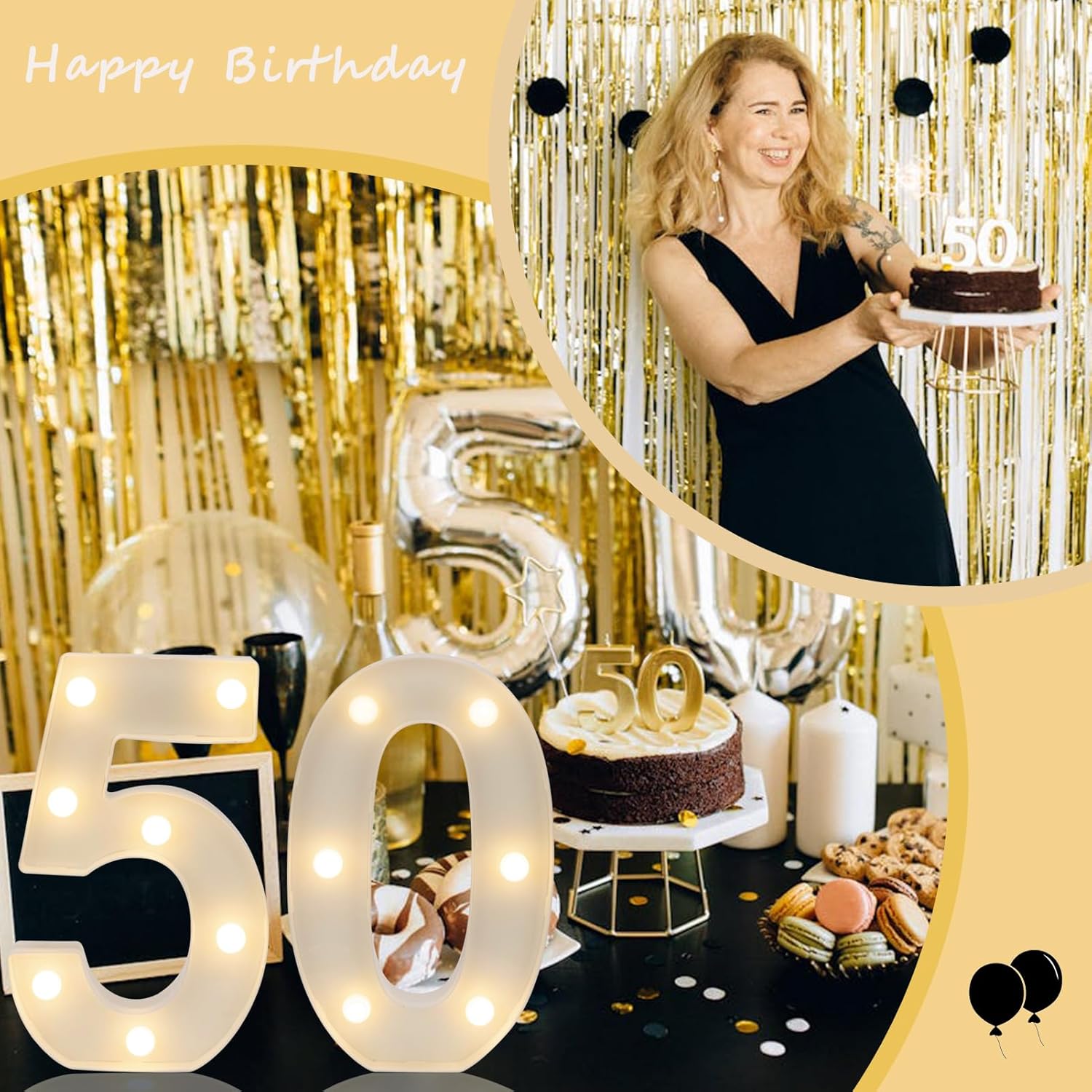 • 【Light Your Birthday Day】 Light up your birthday party with our light up letters spelling out ''50''.Light up the wonderful moments with LED number lights, warm color lights create a warm atmosphere, make your 50th birthday party more unforgettable and sparkling!