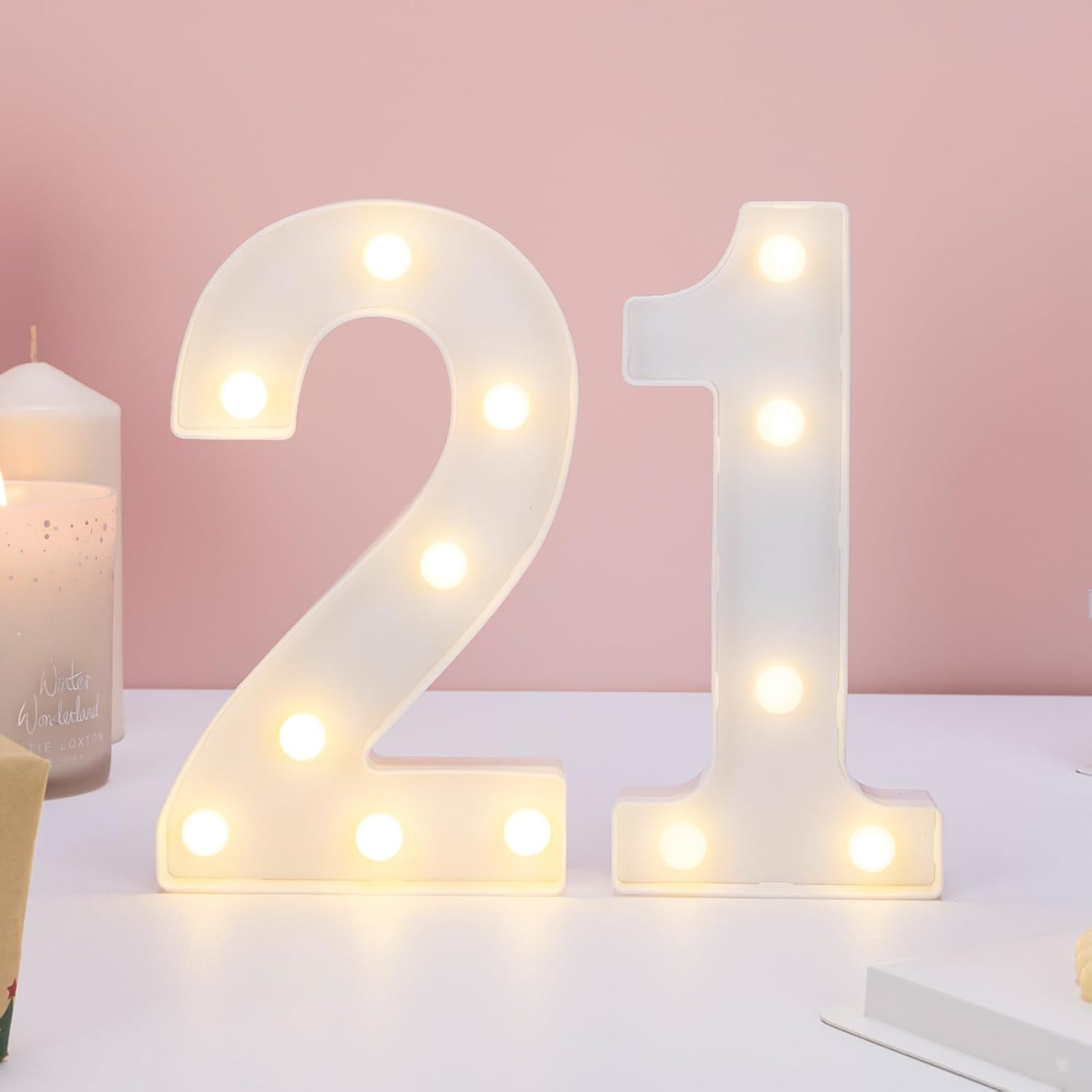 Decorative Led Light Up Numbers, 21th Birthday Decorations, Warm White Led Numbers Lights, Lighted Marquee Number Sign for Sweet 21th Party Decor