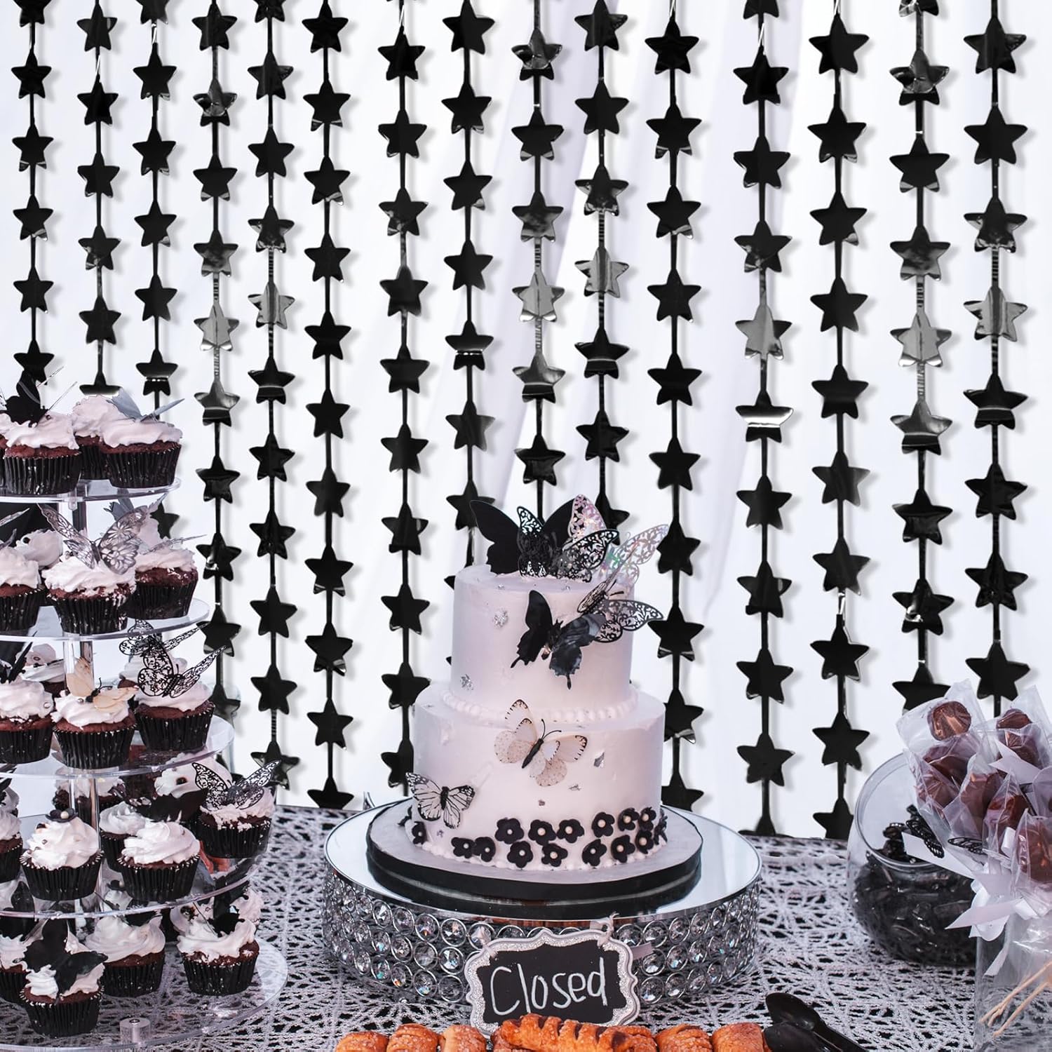 • πŸ–€γ€ IT'S TIME TO CELEBRATE! 】: Our 2 pack Black Stars foil fringe curtains, Large size (width x drop) 3.3 x 6.6 ft each, perfect photo backdrop for various parties.