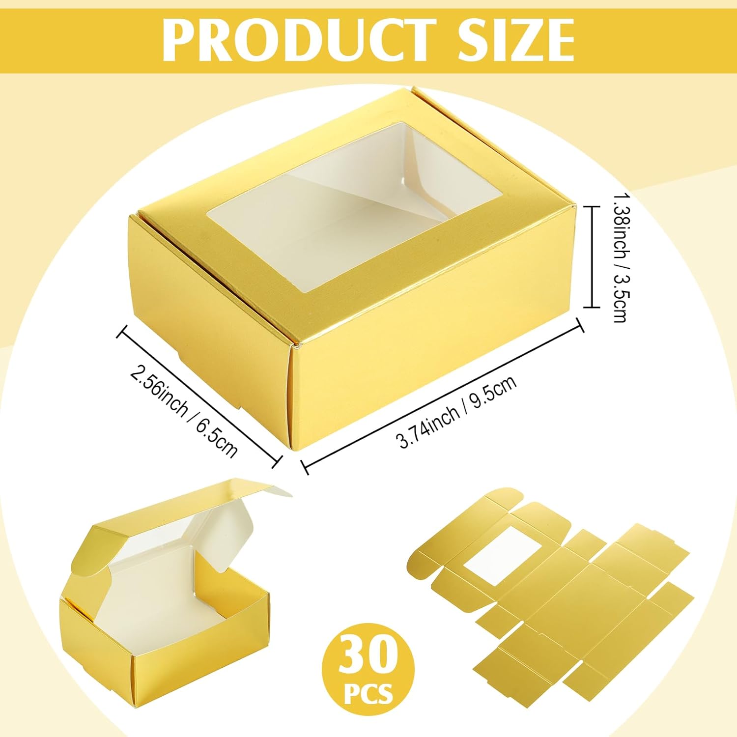 Zonon 30 Pcs Soap Boxes for Homemade Packaging, Mini Kraft Treat Boxes with Window for Bakery Candy Soap Making Gift Packaging(3.7 x 2.6 x 1.37 Inch,Gold)