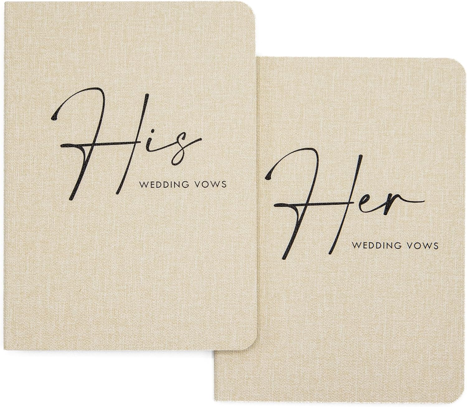 • Our vow books serve the primary purpose of helping you capture and preserve your wedding vows in a dedicated and elegant format. Whether you are writing 'his vows' or 'her vows,' these booklets offer a cherished space for your thoughts and promises, making them an invaluable keepsake. Perfect for wedding ceremonies, vow renewals, or as a heartfelt gift for your fiancé, these vow books add a personal touch to your wedding journal.