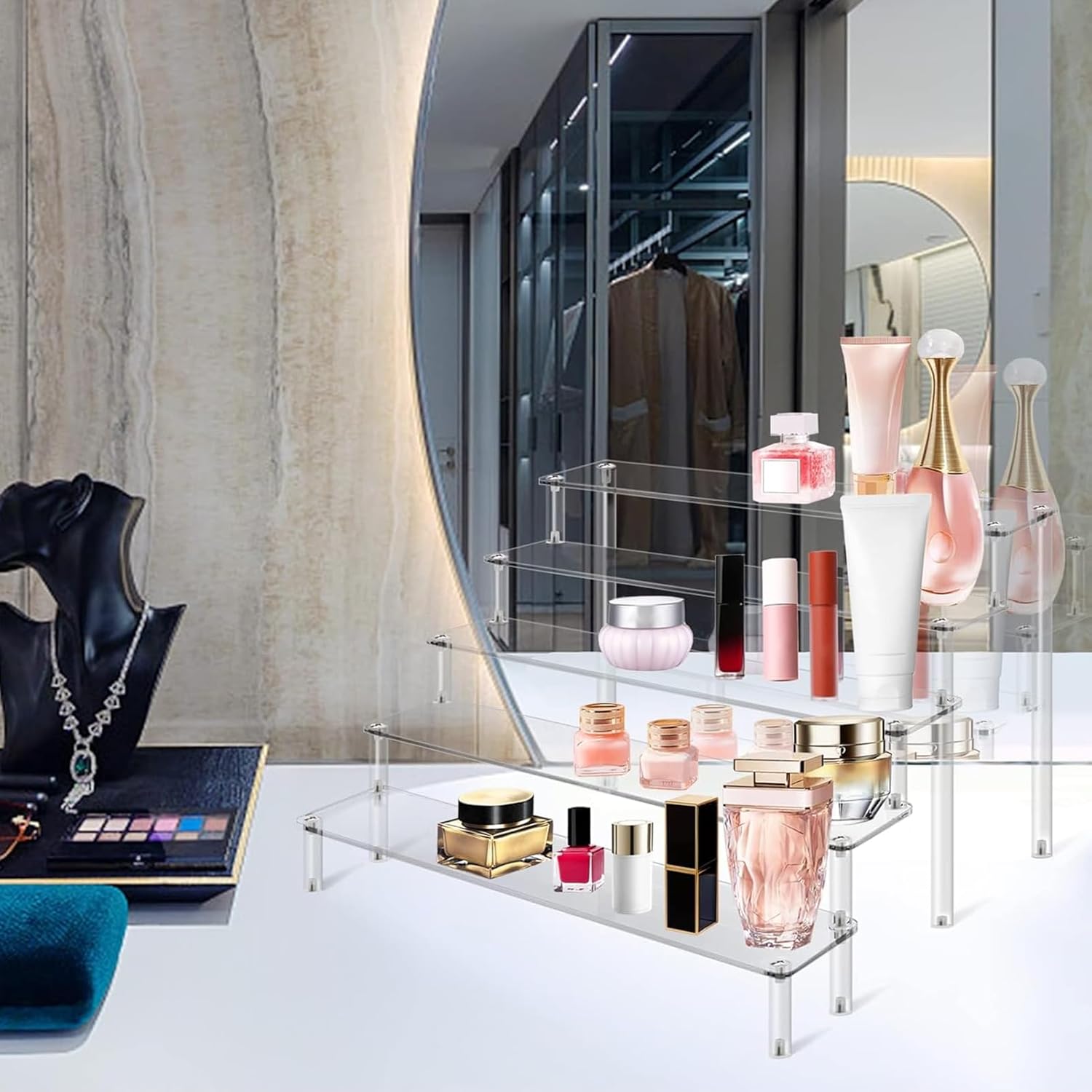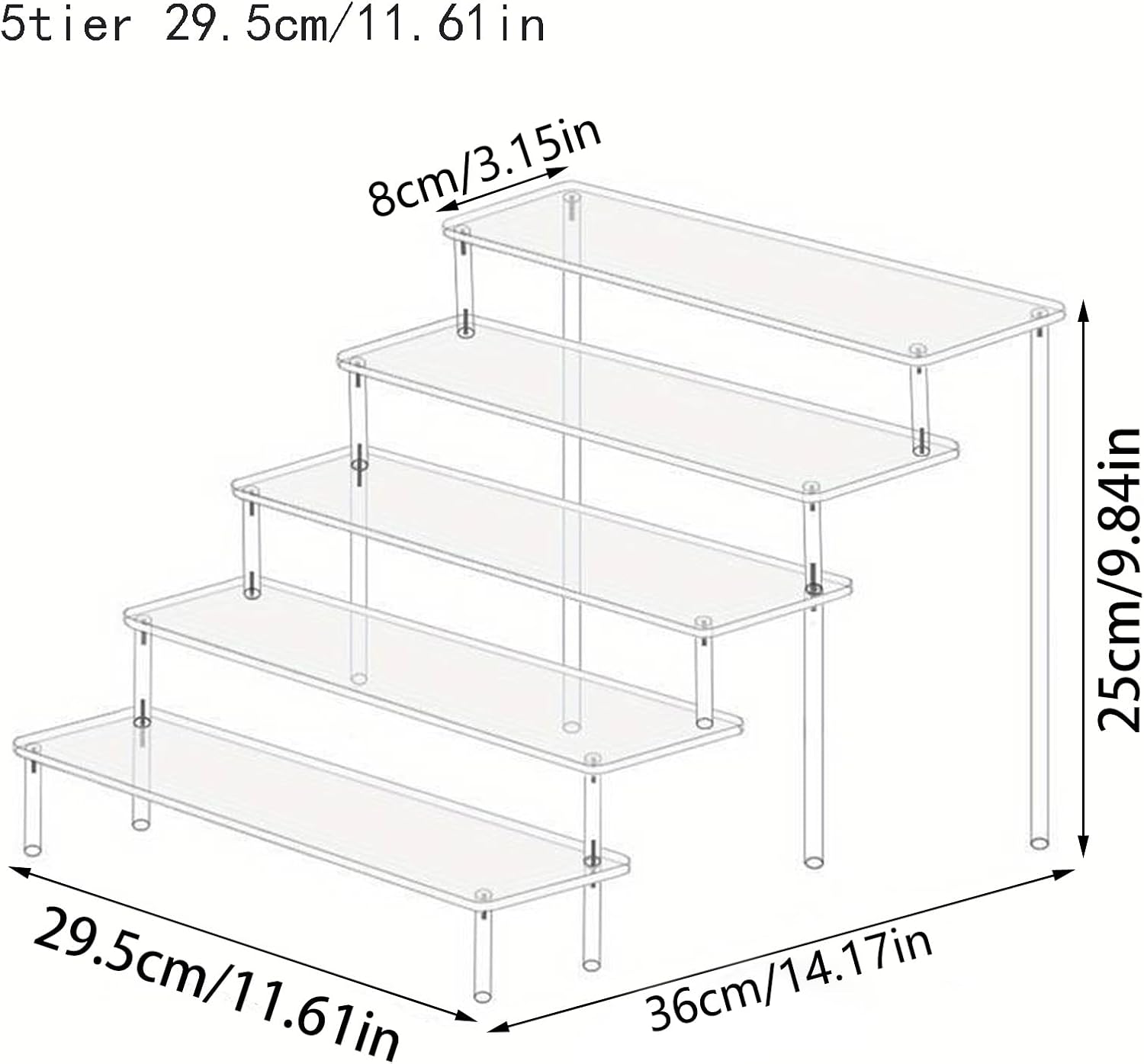• Multi-Purpose Acrylic Display: This 5-tier acrylic riser is perfect for organizing and displaying perfumes, cupcakes, figures, and other decor items. Its clear design allows for maximum visibility, making it ideal for home, events, or retail use.
