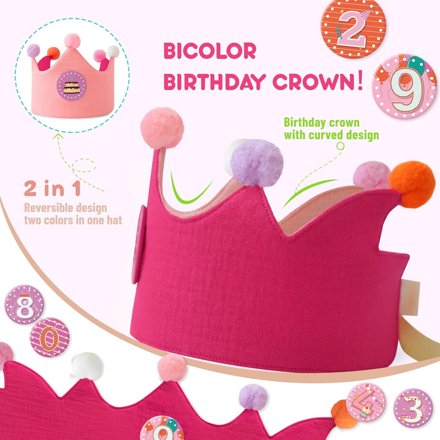 Reusable Birthday Crown with Numbers,Kids Birthday Hat Fabric Crown Pertain Kids Boy Toddler Girl Baby Bday Hats