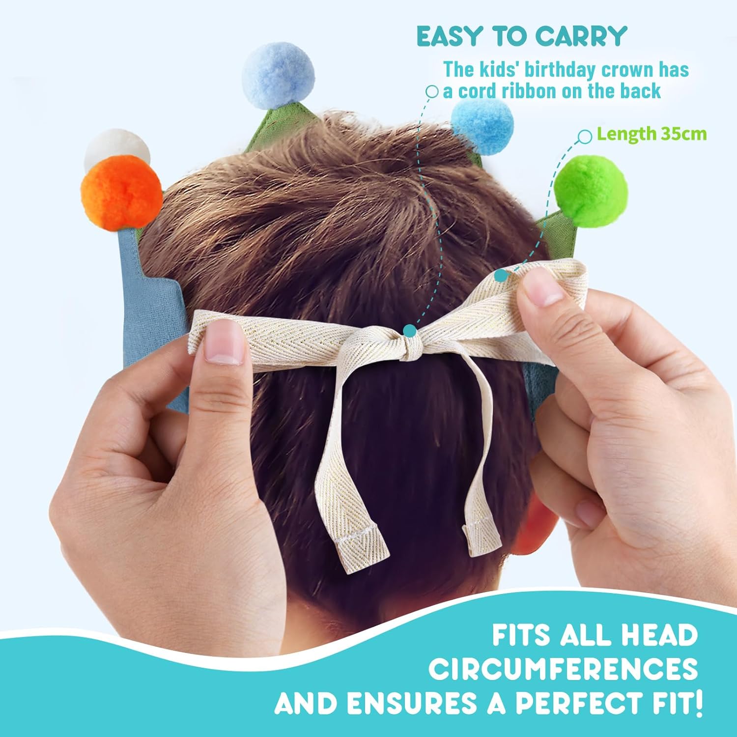• 👑 Handmade Cotton Birthday Crown – Comfortable Fit for All Head Sizes This handmade toddler birthday crown is crafted from soft, breathable cotton fabric. It features adjustable tie straps that comfortably fit children of different ages, ensuring a secure and cozy wear. Perfect for long wear on your child’s special birthday