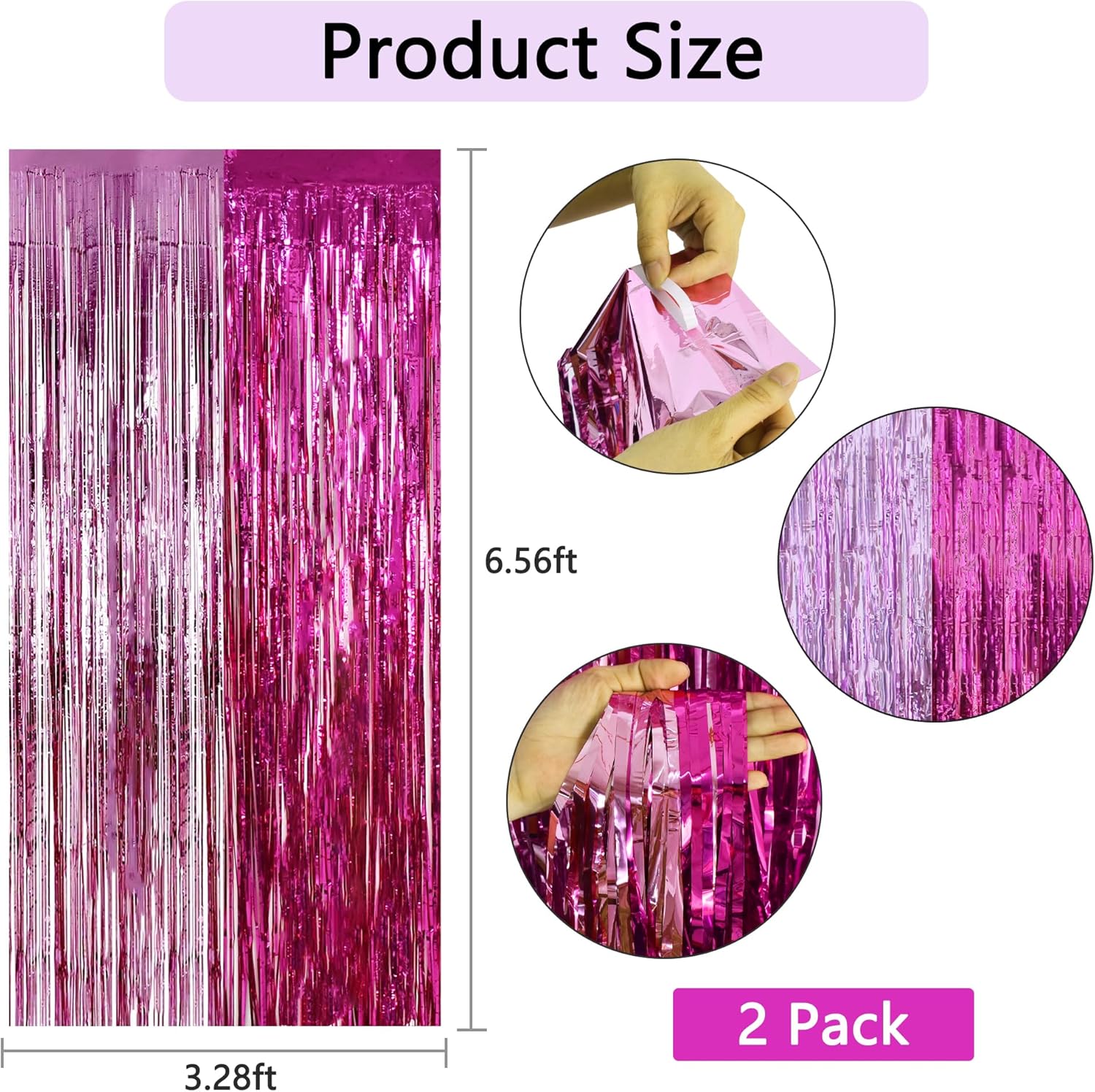 • Dimension: these foil fringe backdrop curtains are 3.28 x 6.56 ft in size; They are cuttable, you can adjust their size in your own way.
