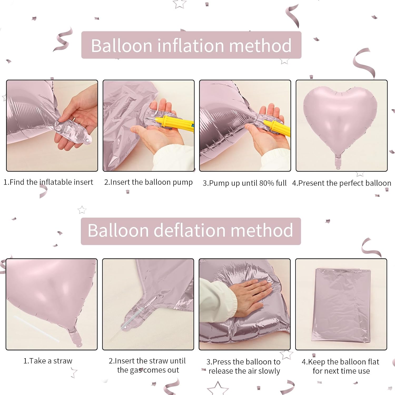 • Easy To Use: These light pink and blue heart heart shaped birthday balloons can be filled with air or helium (inflate to 85%-90%, to prevent it from becoming too large and exploding). The valve seals automatically when inflated, and the gas inside can be emptied with a plastic straw, making them reusable. The set also comes with 10 meters of ribbon, making it easy to decorate your room for your children and spouse.