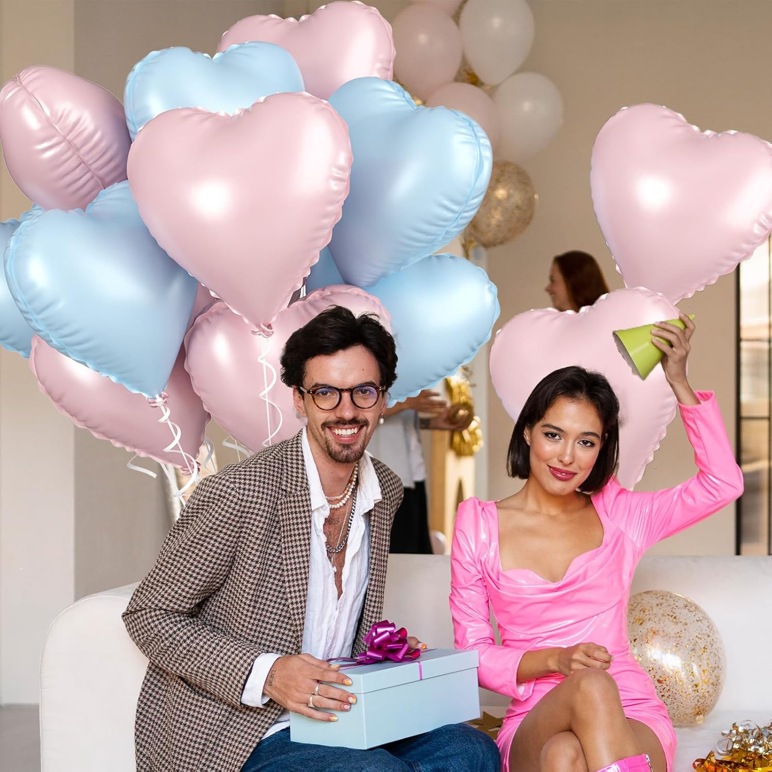 Pink Blue Heart Balloons, 18 Inch Pastel Blue Pink Foil Balloons, 18 Inch Light Pink and Blue Heart Shape Balloon for Girls Boys Birthday Baby Shower Gender Reveal Party Decorations