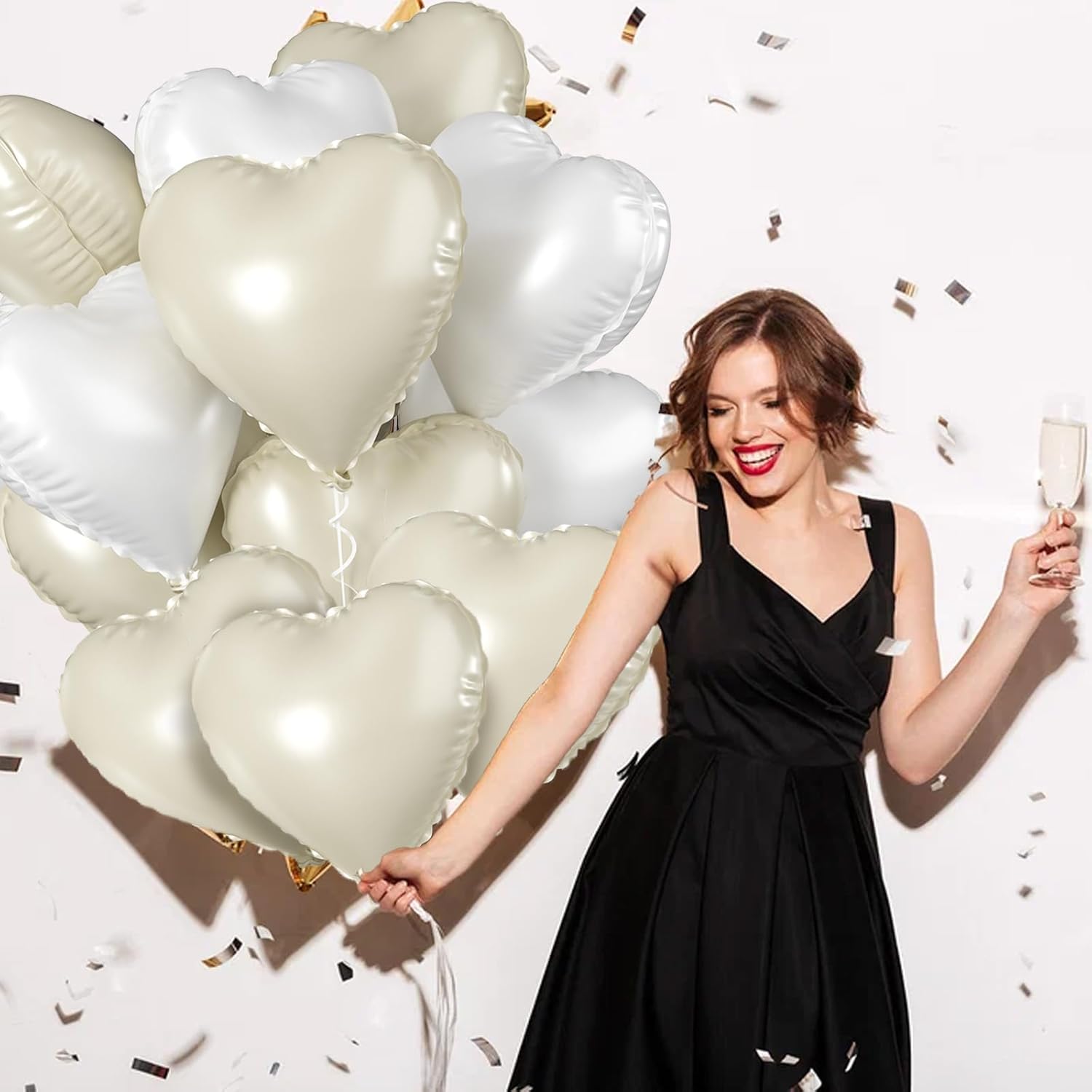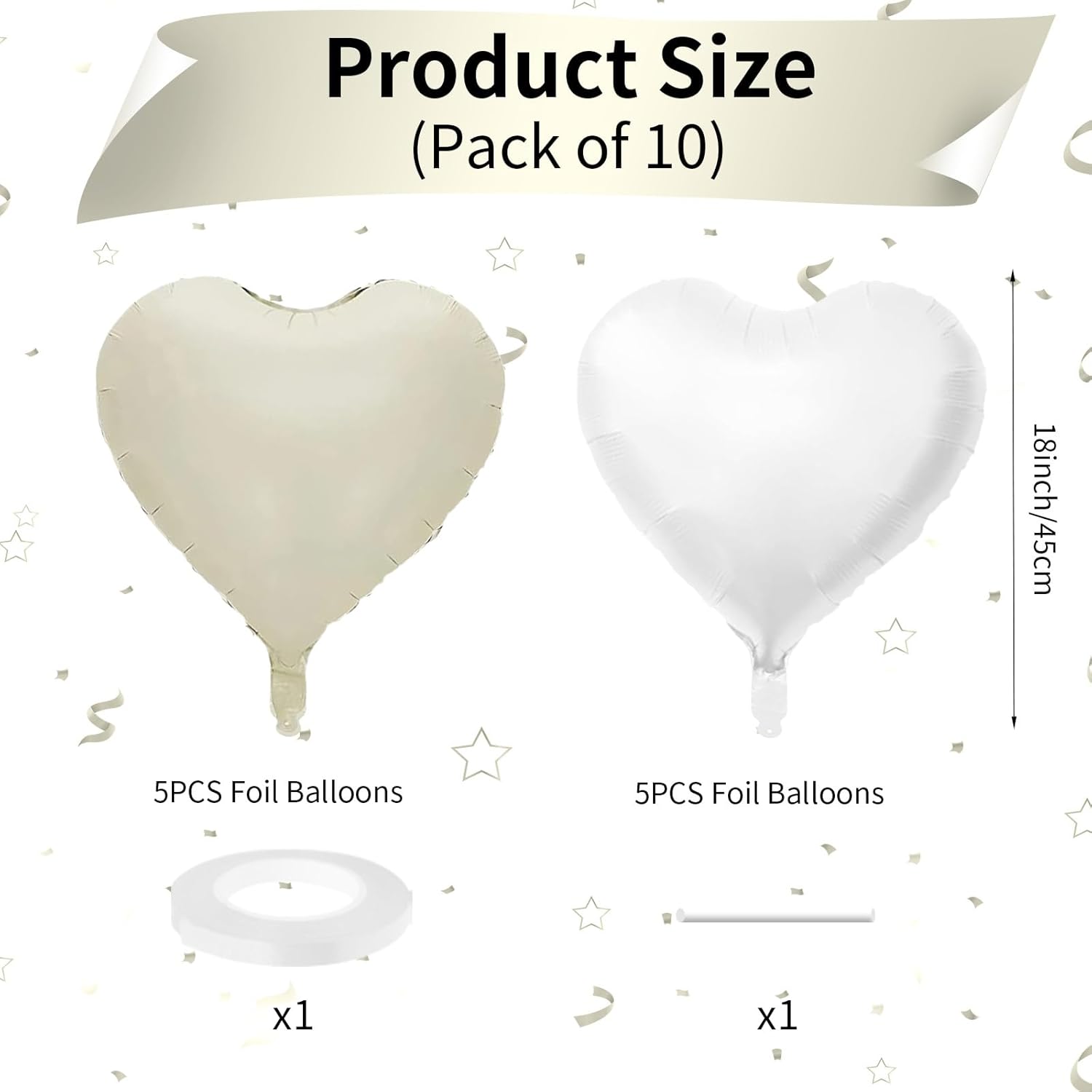 • 10 PCS Cream Heart Balloons: Our package contains 5 x 18 inches cream heart shaped balloons, 5 x 18 inches white heart shaped balloons, 1 x 10m ribbon. The cream foil heart balloons are specially designed to add a touch of fun and surprise to any party or holiday celebration. With a size of 18 inches, they are the perfect addition to your decorating needs, leaving your guests with an unforgettable smile!