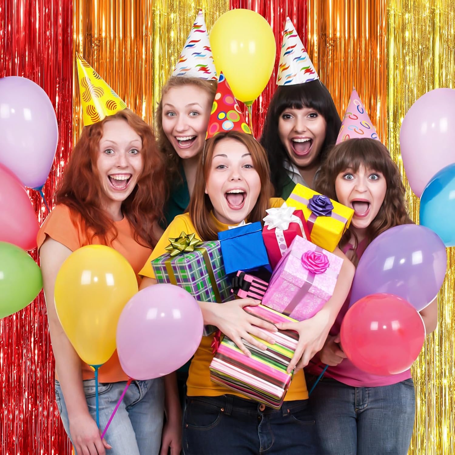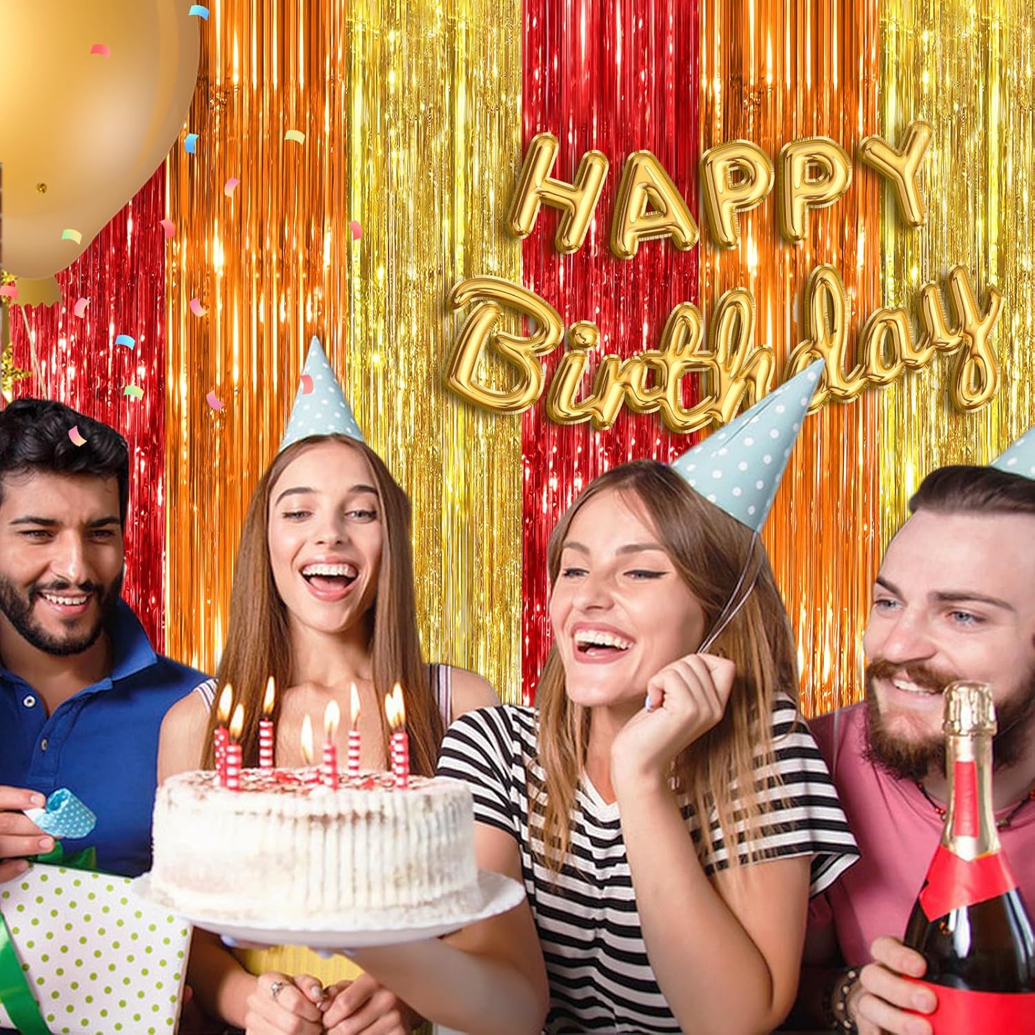 • Eye Catching Design. Crafted from Foil materials, these laser Streamers foil fringe curtains boast vibrant colors and a shimmering effect that reflects light beautifully. Your guests will be mesmerized by the captivating atmosphere these curtains Streamers create.