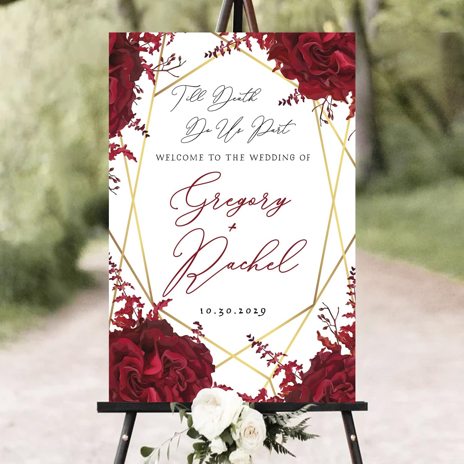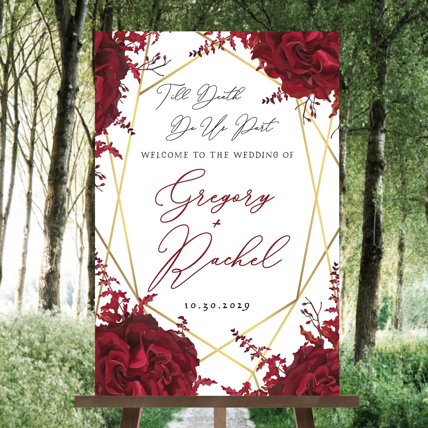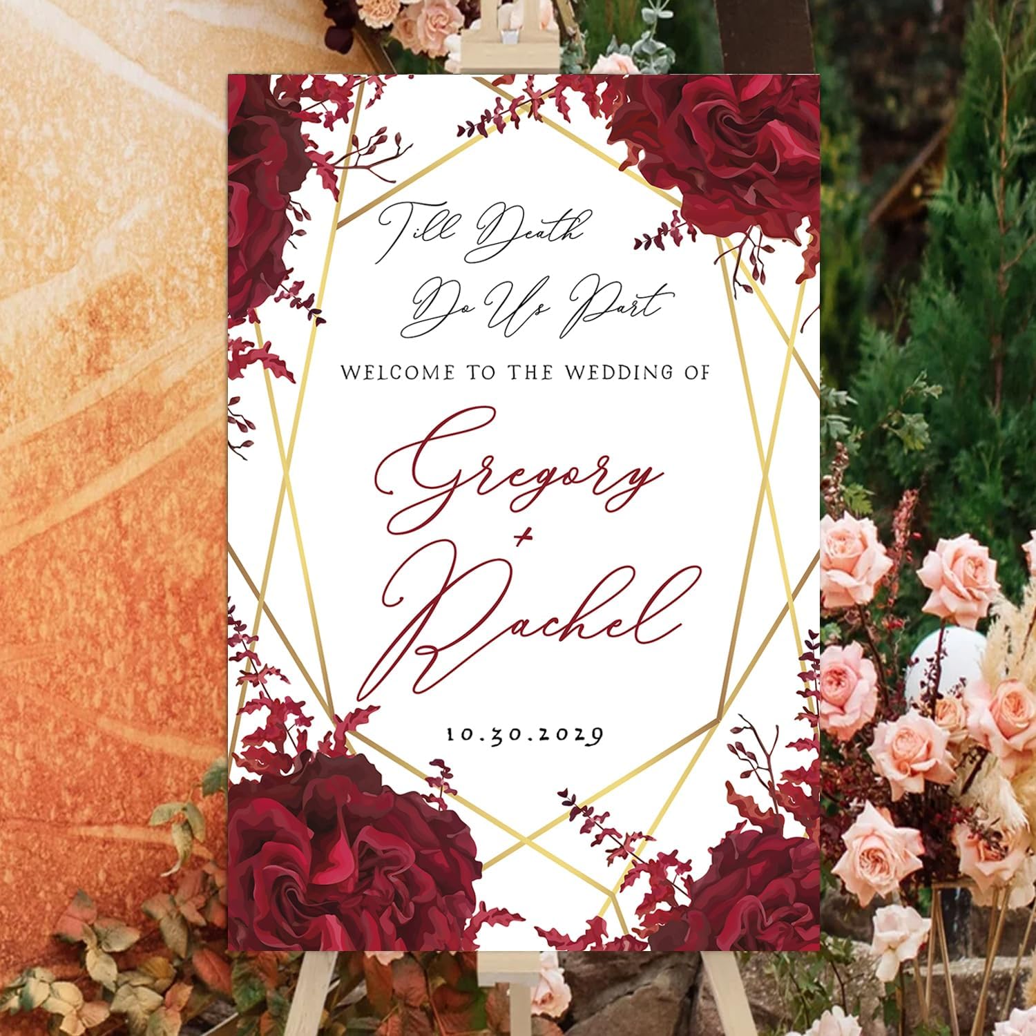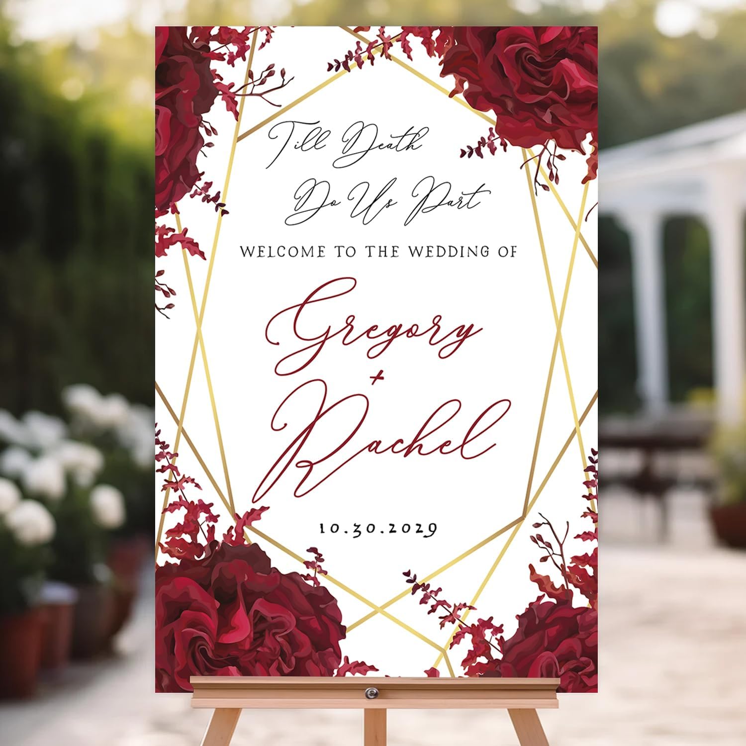 • A stunning choice for those planning a Gothic-inspired wedding or a Halloween-themed celebration. Whether you're exchanging vows on All Hallows' Eve or simply love the allure of Gothic aesthetics, this welcome sign will captivate your guests and make a bold statement.