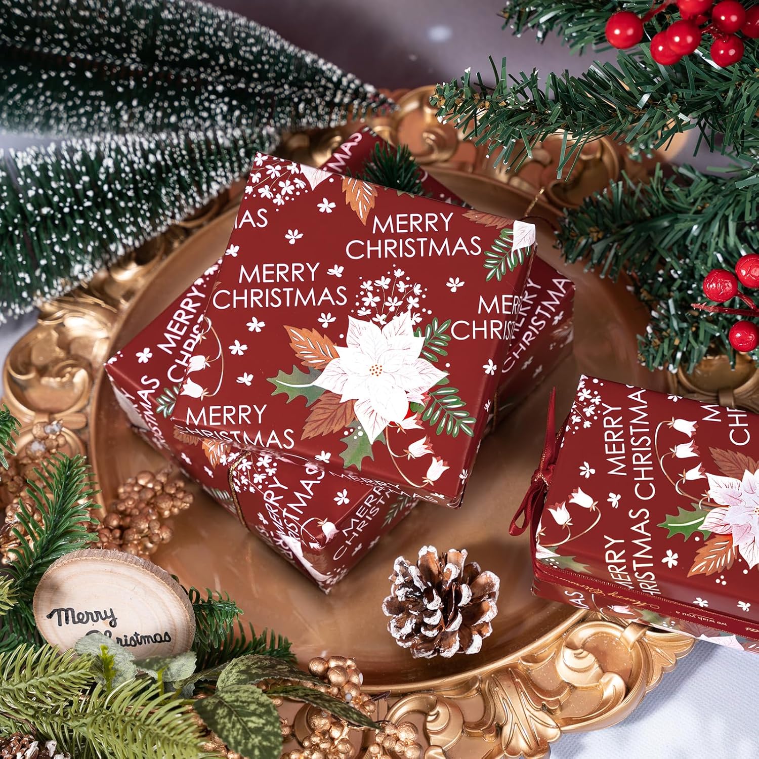 LeZakaa Christmas Wrapping Paper Roll - Red Flower & Merry Christmas Letter Pattern for Holiday, Party - 17 inches x 32.8 Feet (46.45 sq.ft.)