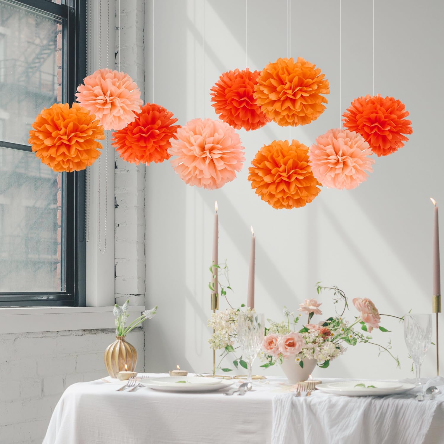 WEVEN Tissue Pom Poms Tissue Paper Flowers Tissue Fluff Balls Party Decorations 12-Inch Pack of 12 (Orange, Peach)