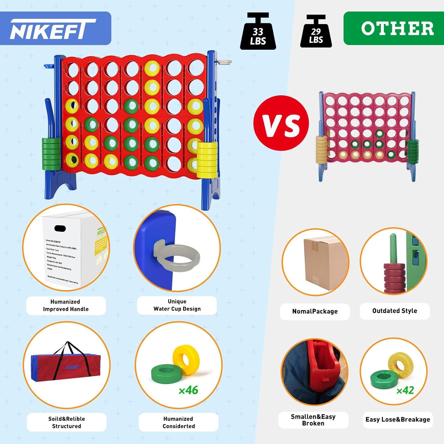 • 🎁 Perfect Gift with Excellent After-Sales Service: Looking for a gift that guarantees smiles? The N1keft Jumbo 4-to-Score Giant Game is ideal for birthdays, holidays, and family events. Plus, our excellent after-sales service ensures your complete satisfaction. Join thousands of families who’ve made our game a part of their cherished traditions.