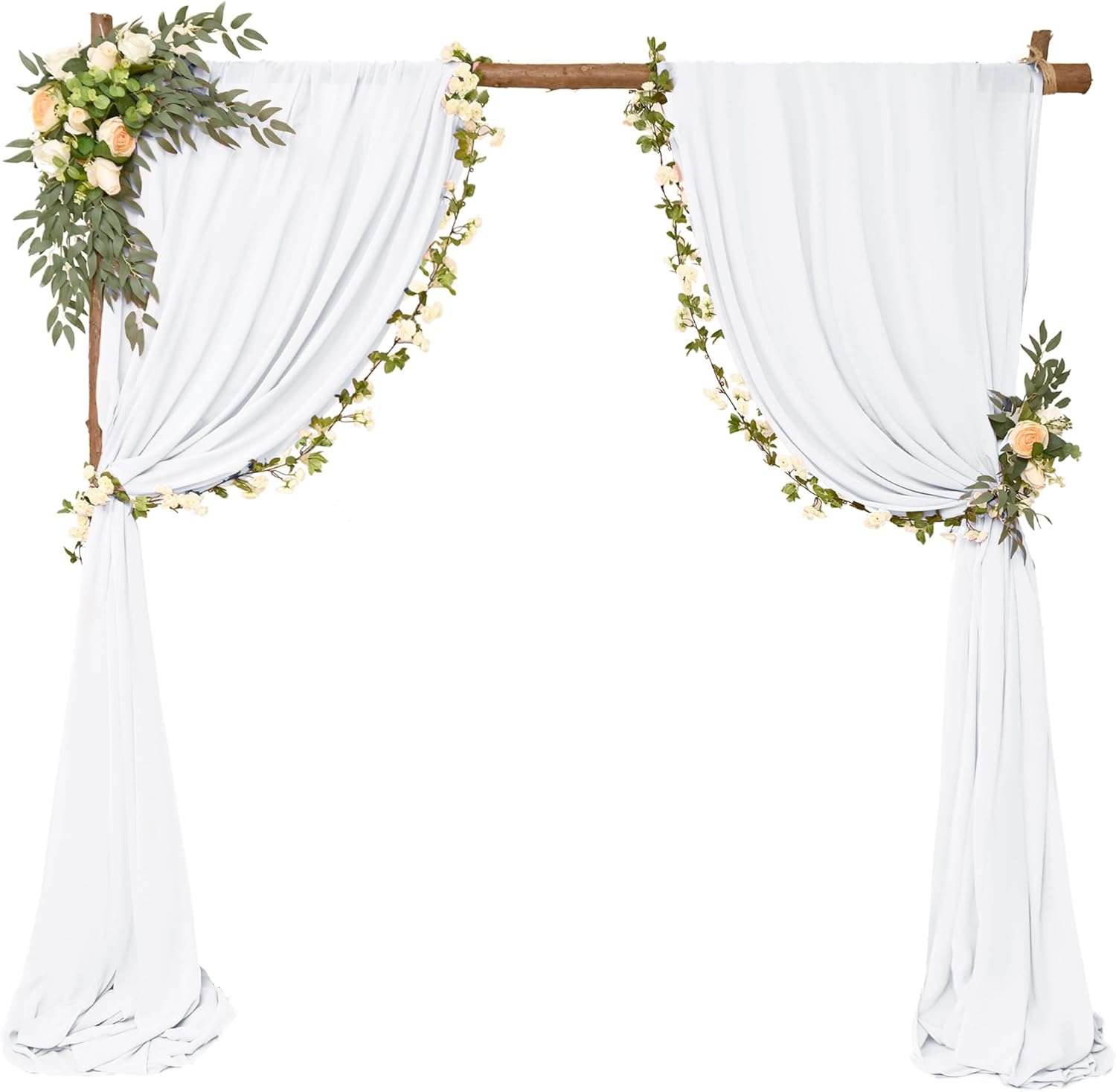 4 Panels Wedding Arch Draping Fabric 28" x 20Ft Wedding Arch Drapes Chiffon Fabric Drape Sheer Backdrop Curtain for Weddings Party Swag Ceremony Birthday Arbor Drapery Reception Ceiling Decor(White)