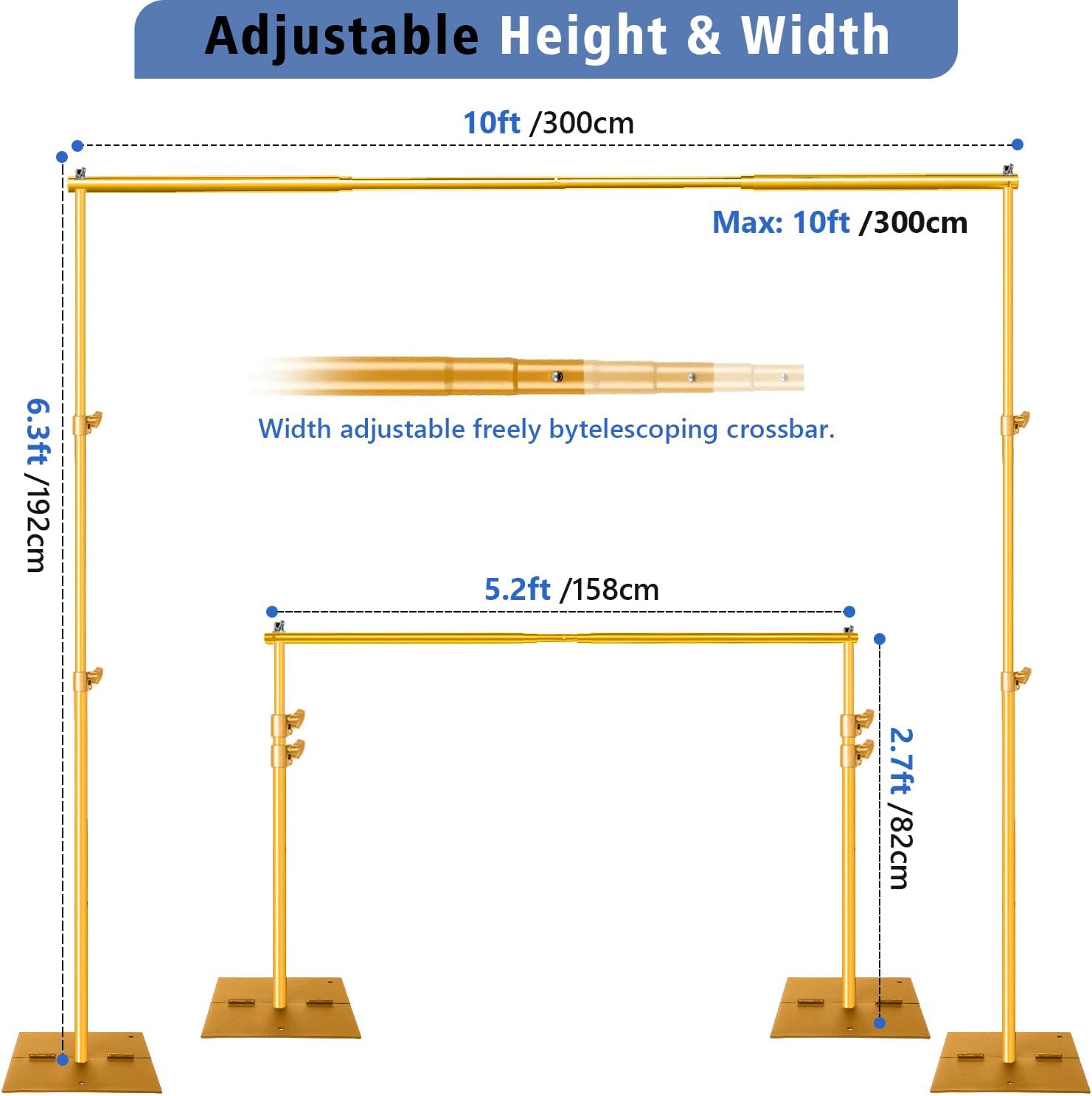Pipe and Drape Photography Backdrop Stand Kit - Titanium Gold Adjustable Photo Background Stand 10ft x 6.5ft with Metal Base for Parties Weddings Birthday Party Events Photo Booth