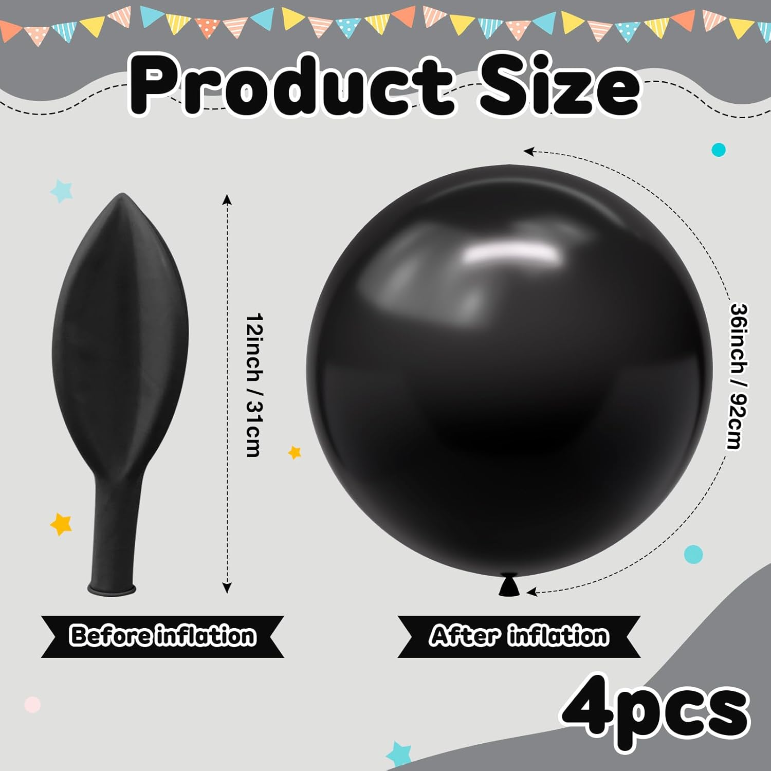 • 【Size& Quantity】 Each sets contains 4pcs 36 inch giant black balloons; big balloons are safe ,heavy thick, bouncy and Eco-friendly latex material which is durable and long-lasting quality ,these big round balloons Thicker and much strong than typical balloons for longer lasting fun.