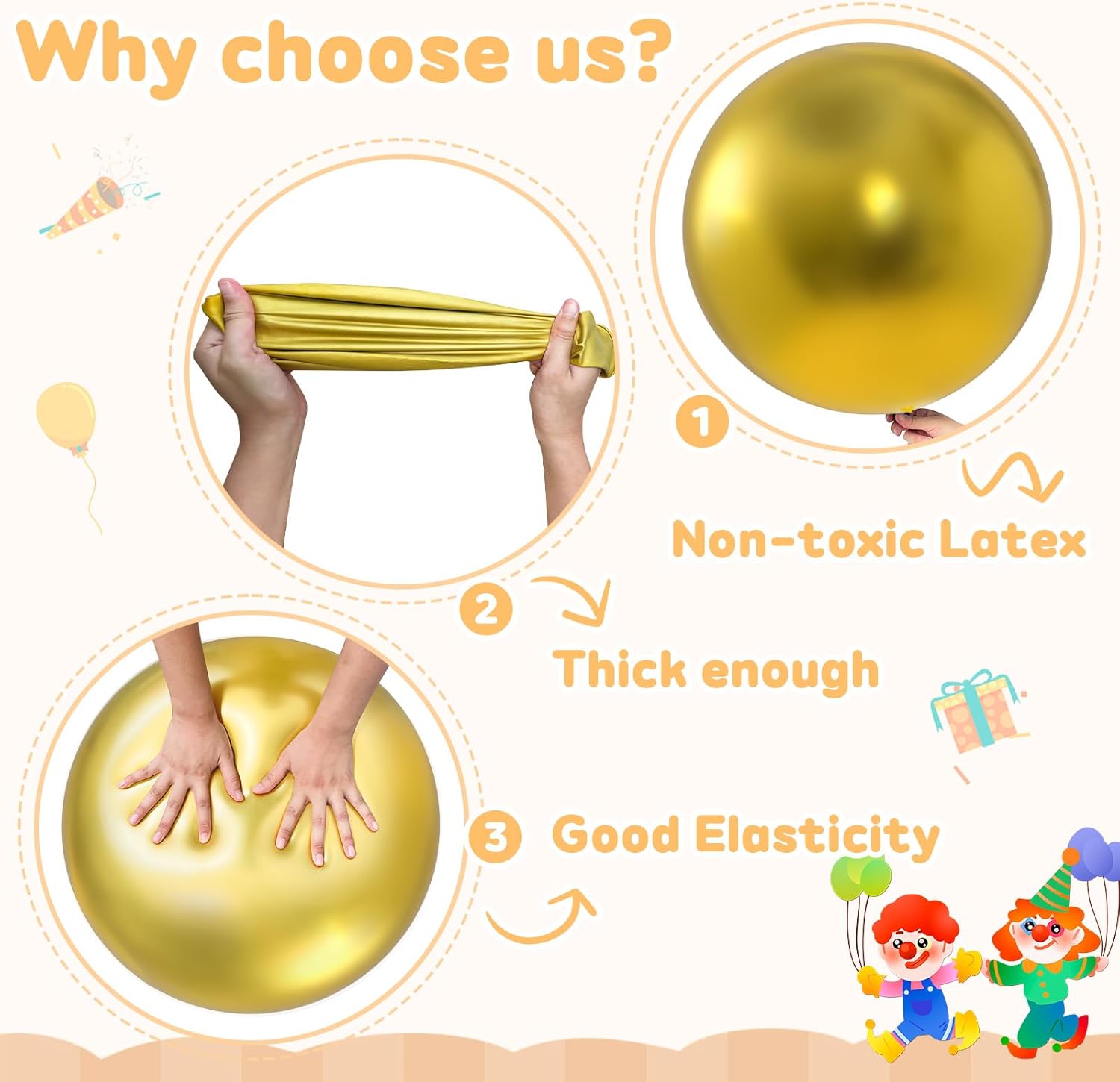 • 【Size& Quantity】 Each sets contains 4pcs 36 inch giant metallic gold balloons; big balloons are safe ,heavy thick, bouncy and Eco-friendly latex material which is durable and long-lasting quality ,these big round balloons Thicker and much strong than typical balloons for longer lasting fun.