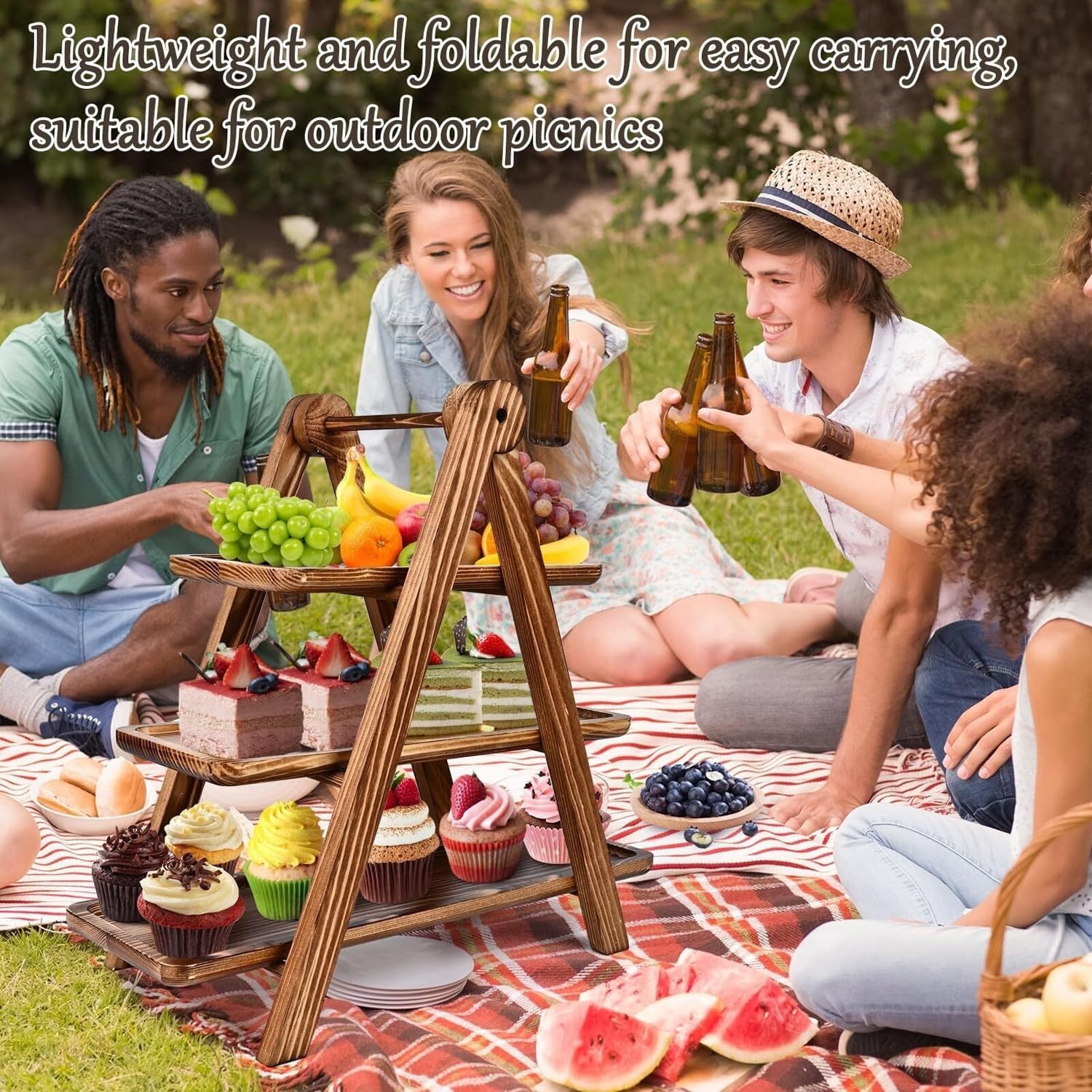Wooden 3 Tier Serving Tray, Detachable Cupcake Stand, Rectangle Serving Platter Three Tiered Stand,Fruit,Appetizer,Dessert Decorative Tray Decor Party Food Table Display