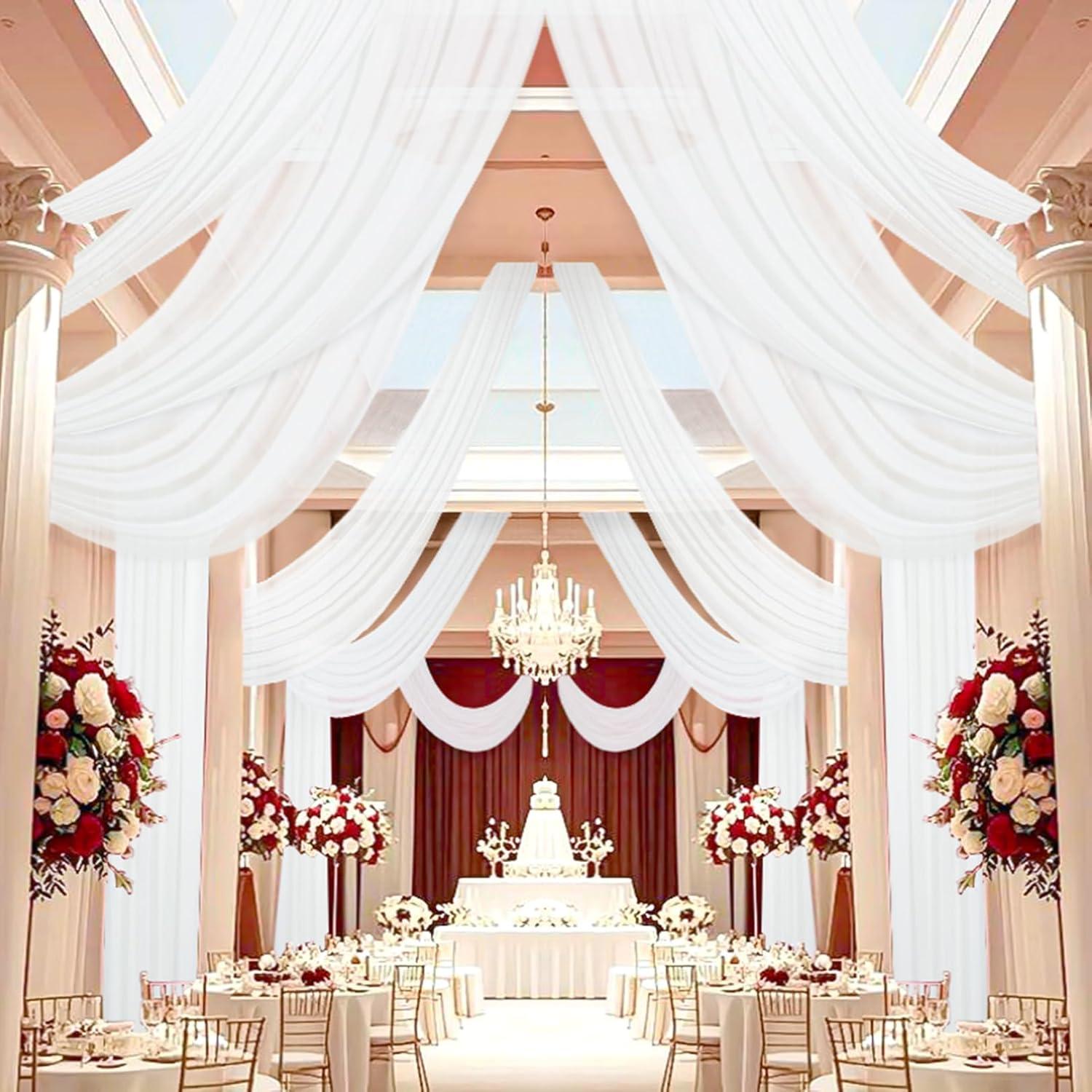 DUOBAO 6-Panel Chiffon Wedding Backdrop Drapes 5x10FT - Semi-Sheer White Fabric Ceiling & Stage Decor for Ceremony, Party, Outdoor Events