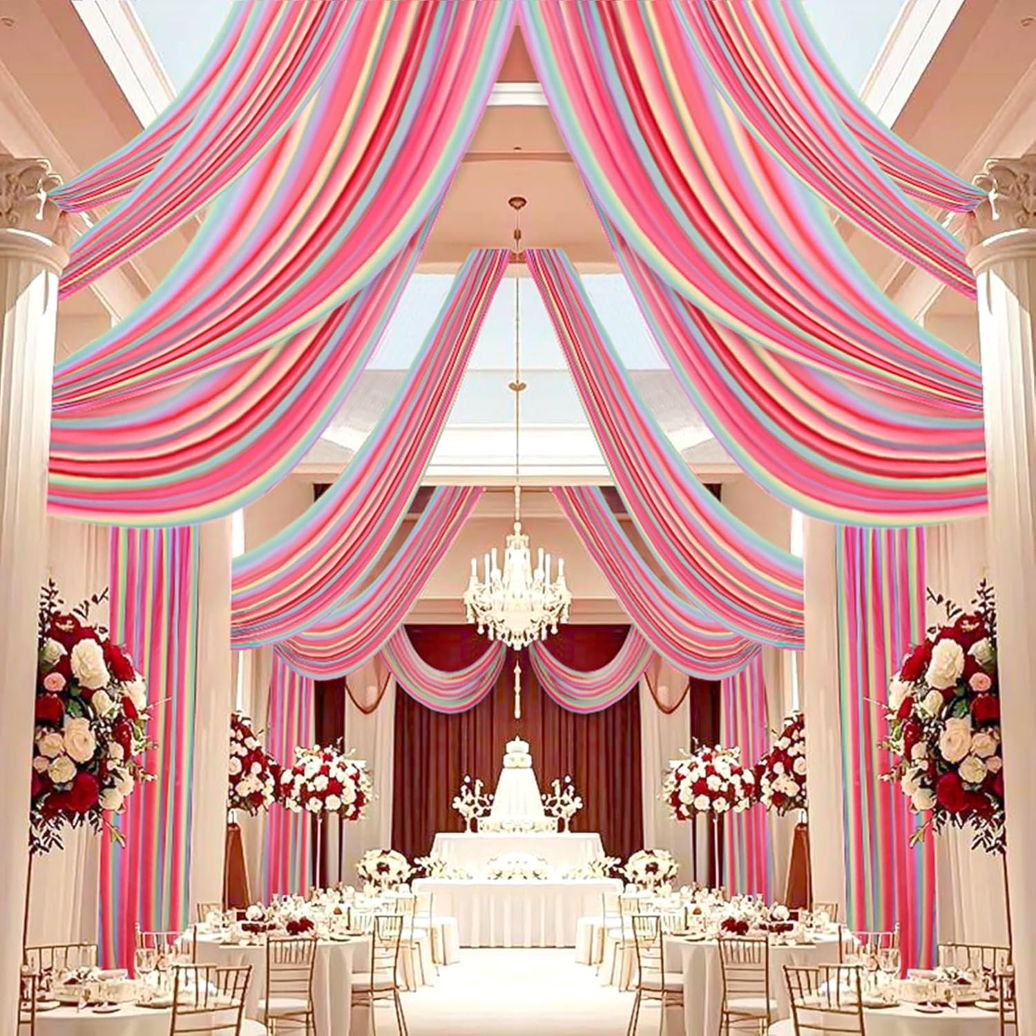 • Ceiling Drapes Package&Size: Package includinge 6 panels rainbow chiffon ceiling, each panel is 50" wide 120" long