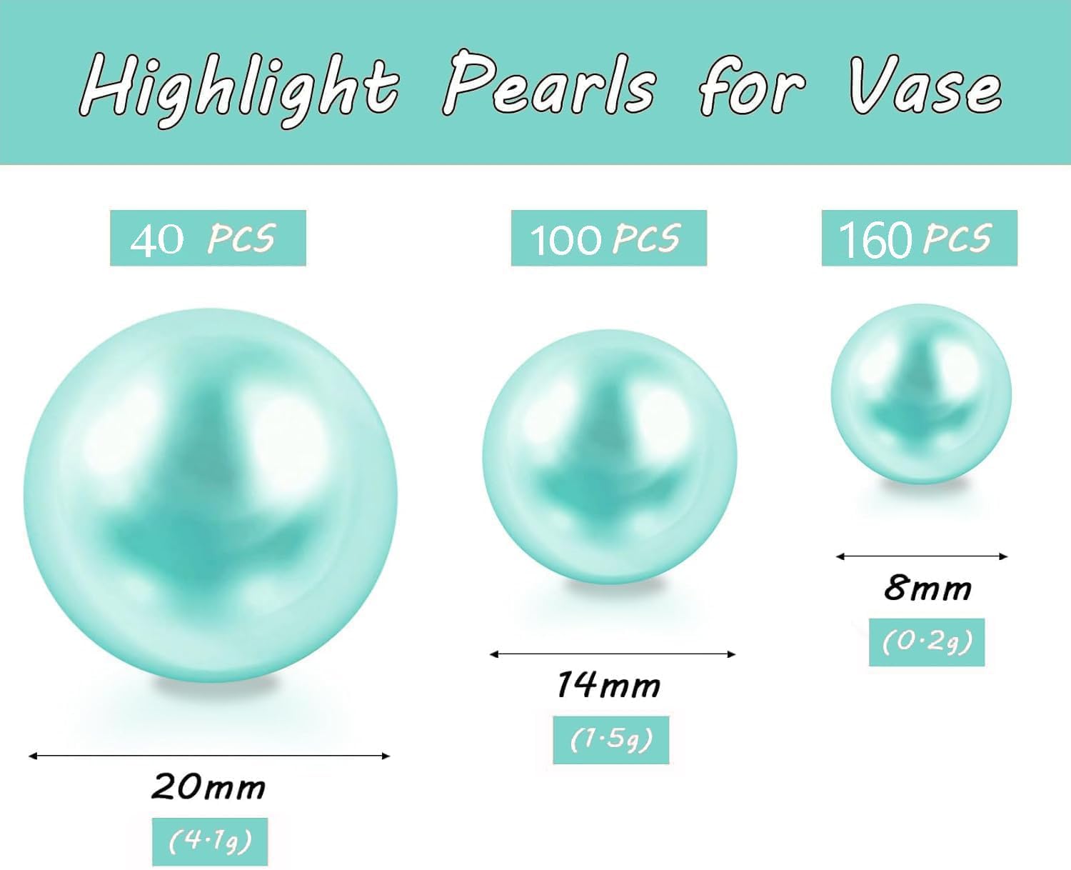 300Pcs Lake Blue Polished No Hole Faux Pearl Beads for Vase Filling Decorations, Plastic Pearls Vase Fillers, Table Scatters, Wedding Centerpiece, Home Decor, 8/14/20 mm