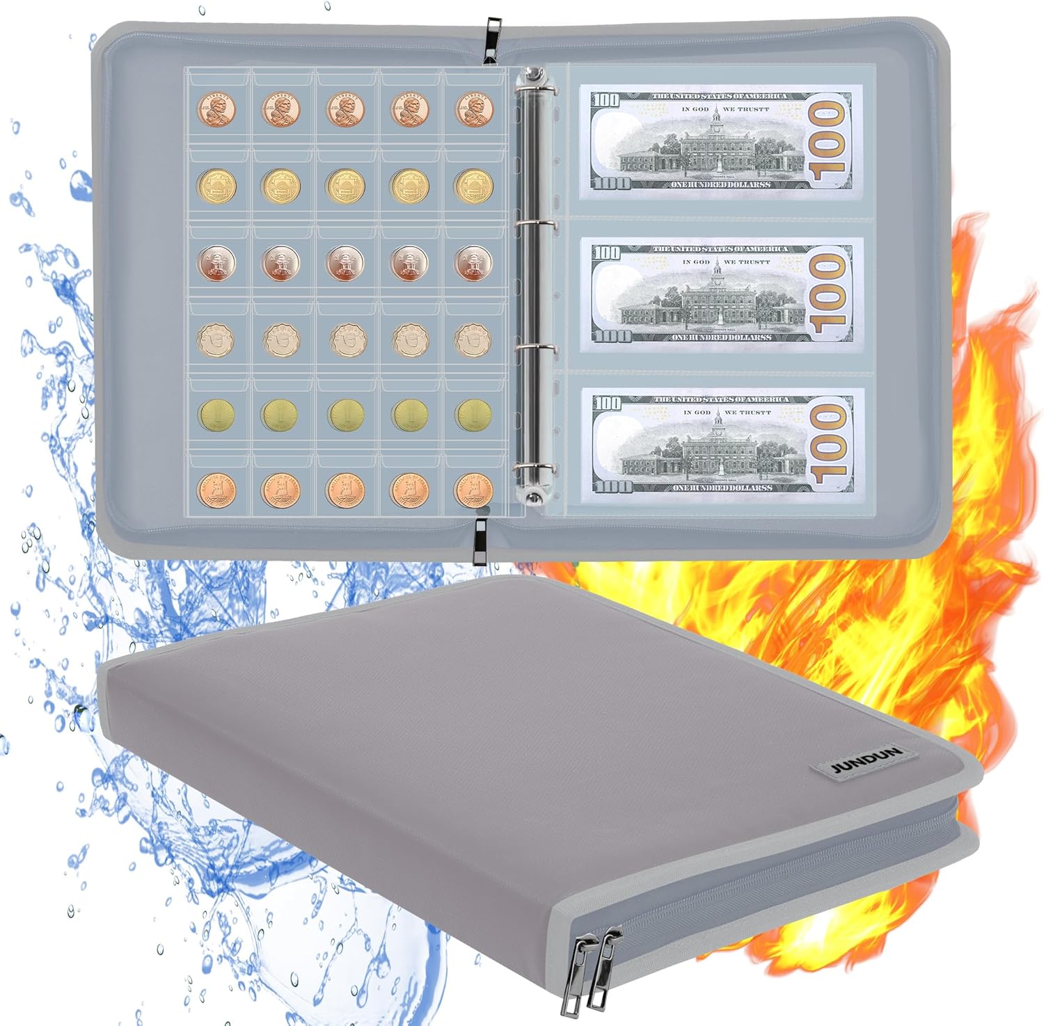 • Fireproof Safe Protection :coin albums for collectors is made of silicone coated material which withstands the temperature up to 2000℉ .It will protect your valuables from the damage in case of fire .Coin collection book for collectors gives you enough time to save your valuables from fire.It is highly recommended that coin collection album is combined with fireproof safe.They will offer you the double fireproof safe protection