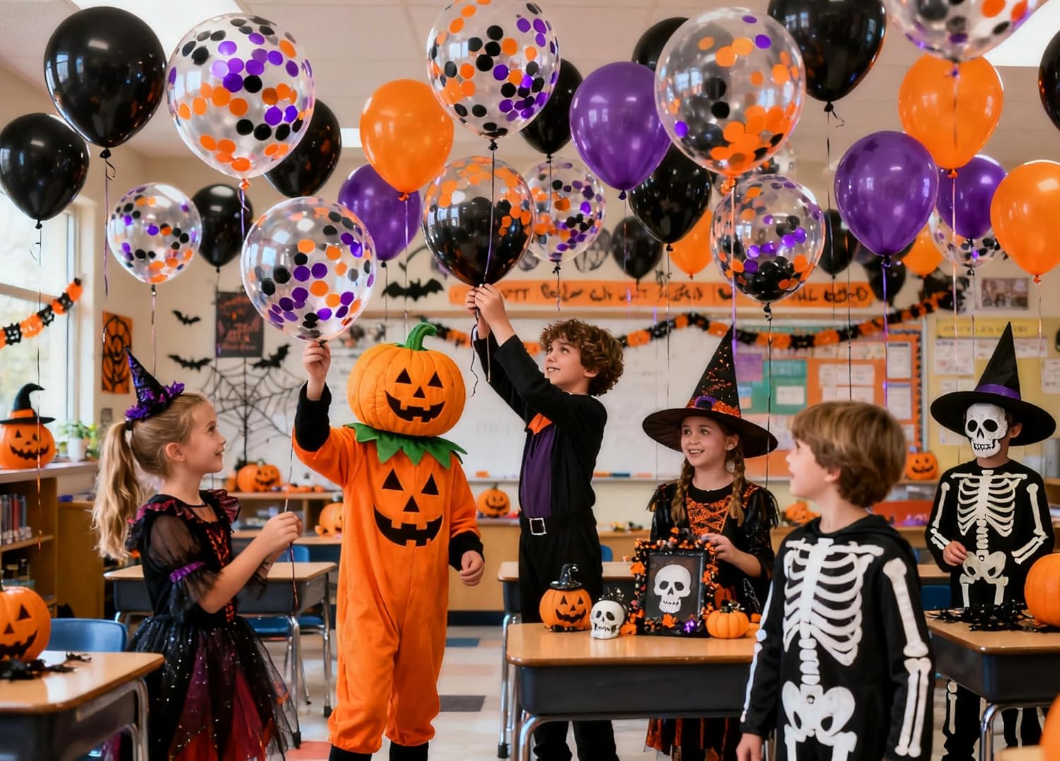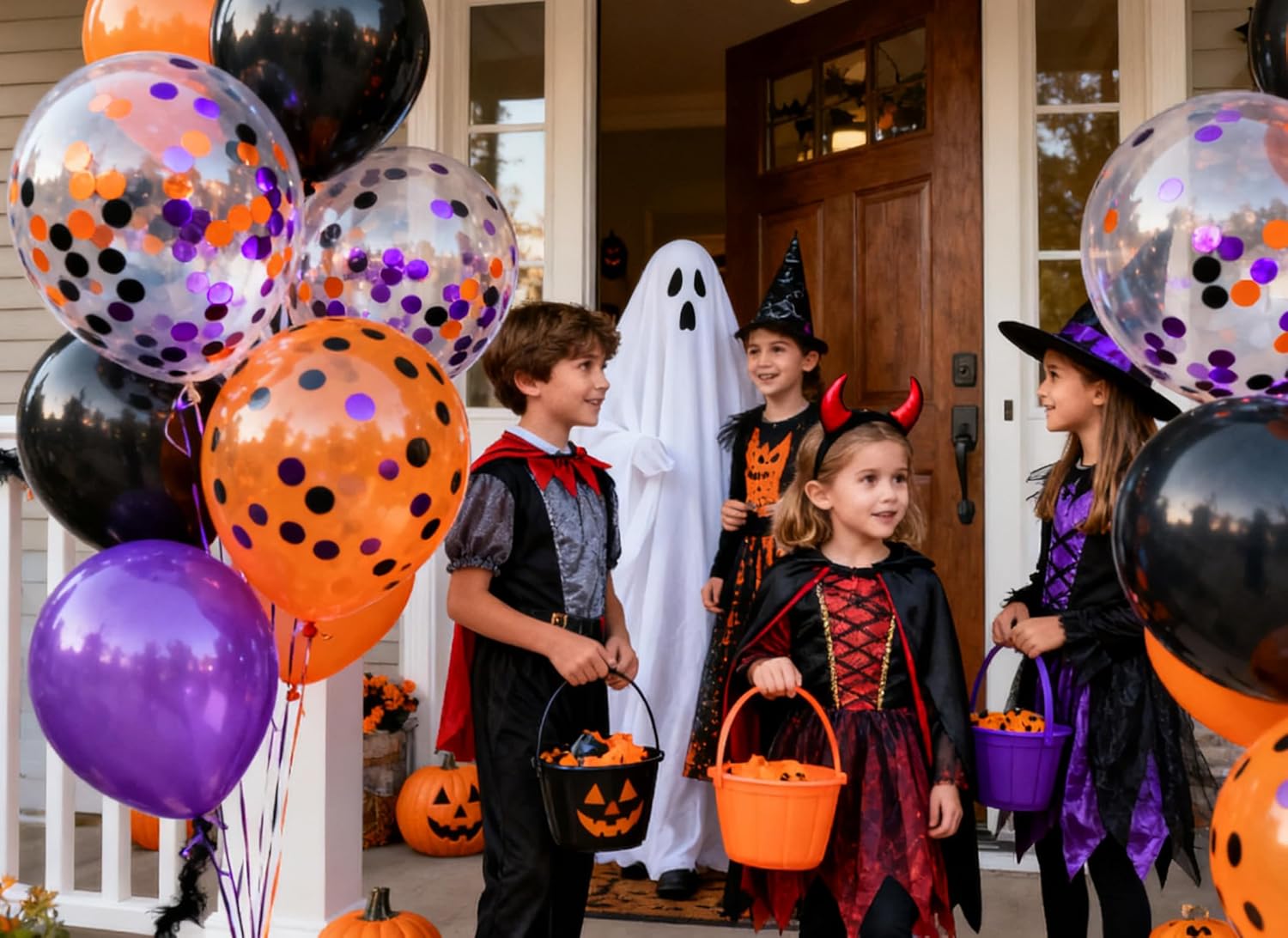• YOU WILL GET: The Purple Orange Black balloons set including 50 pcs confetti party balloons. all of them filled with Purple Orange Black paper confetti dots already put in the transparement latex balloons. they can both hold helium and air. perfect for decoration any party.