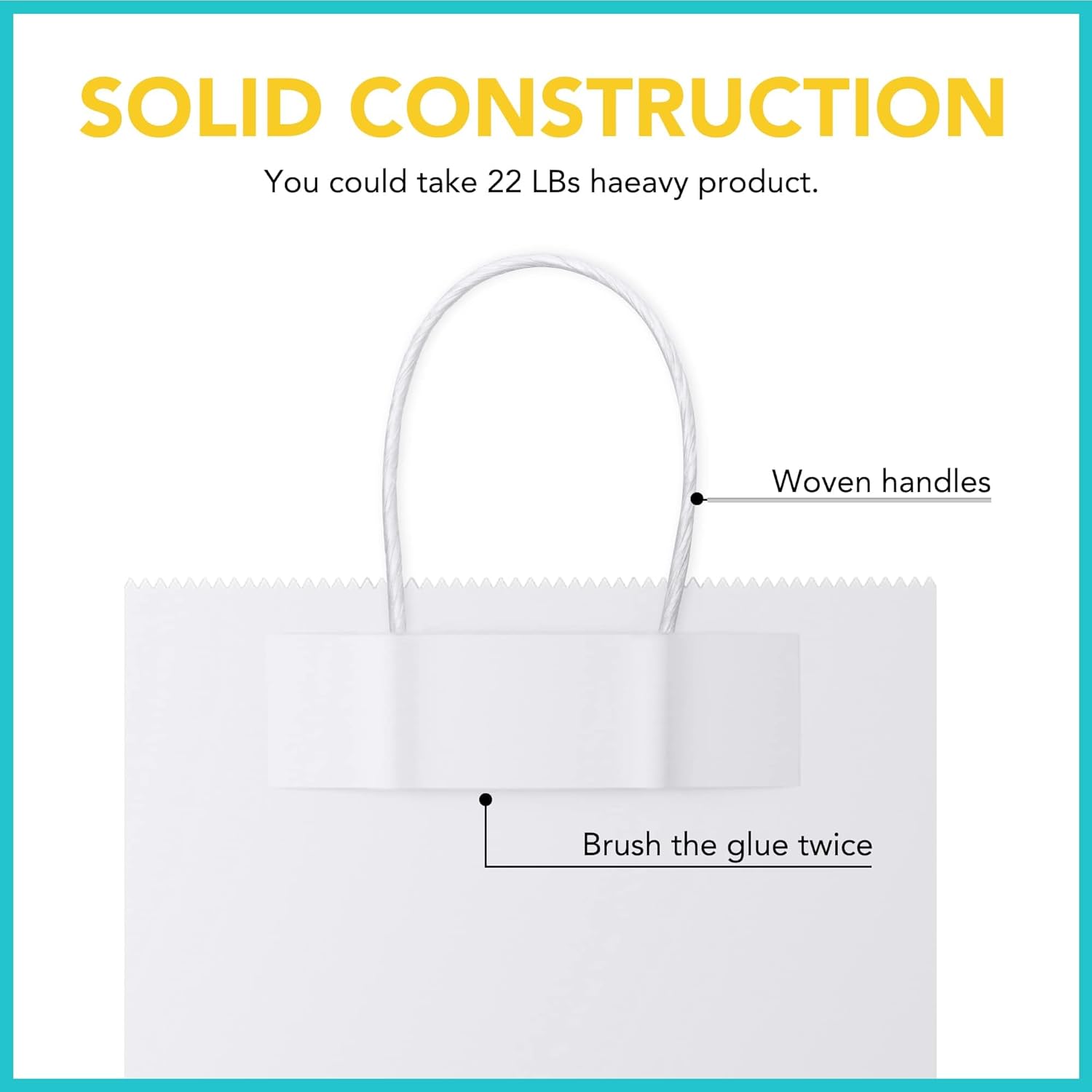 GSSUSA 16x6x12 Inches Large Paper Bags with Handles, 200Pc White Paper Gift Bag, Recyclable Shopping Bags Kraft Paper Bag for Small Business, Party Favor, Craft Bag for Boutique