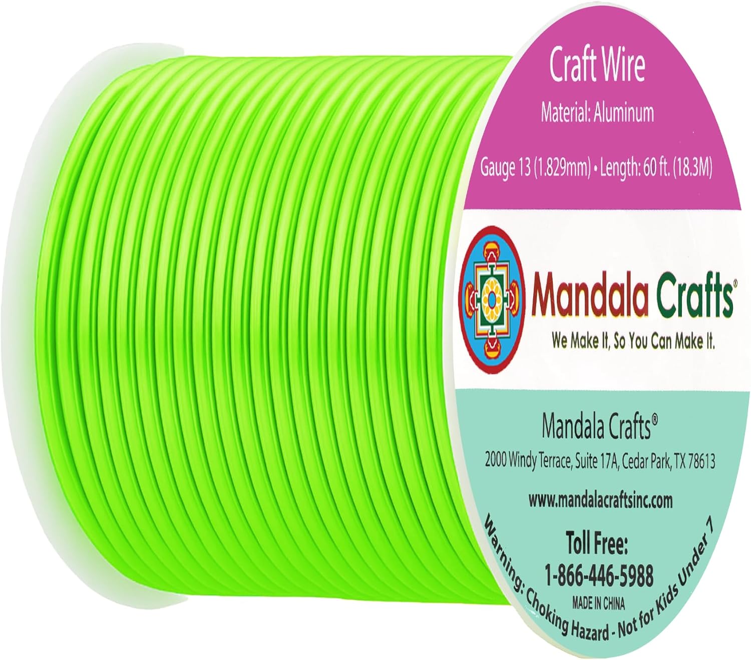 Mandala Crafts 13 Gauge Anodized Aluminum Craft Wire for Jewelry Making - 60 FT Colored Flexible Lime Green Wire - Bendable for Bonsai Armature Crafting Sculpting
