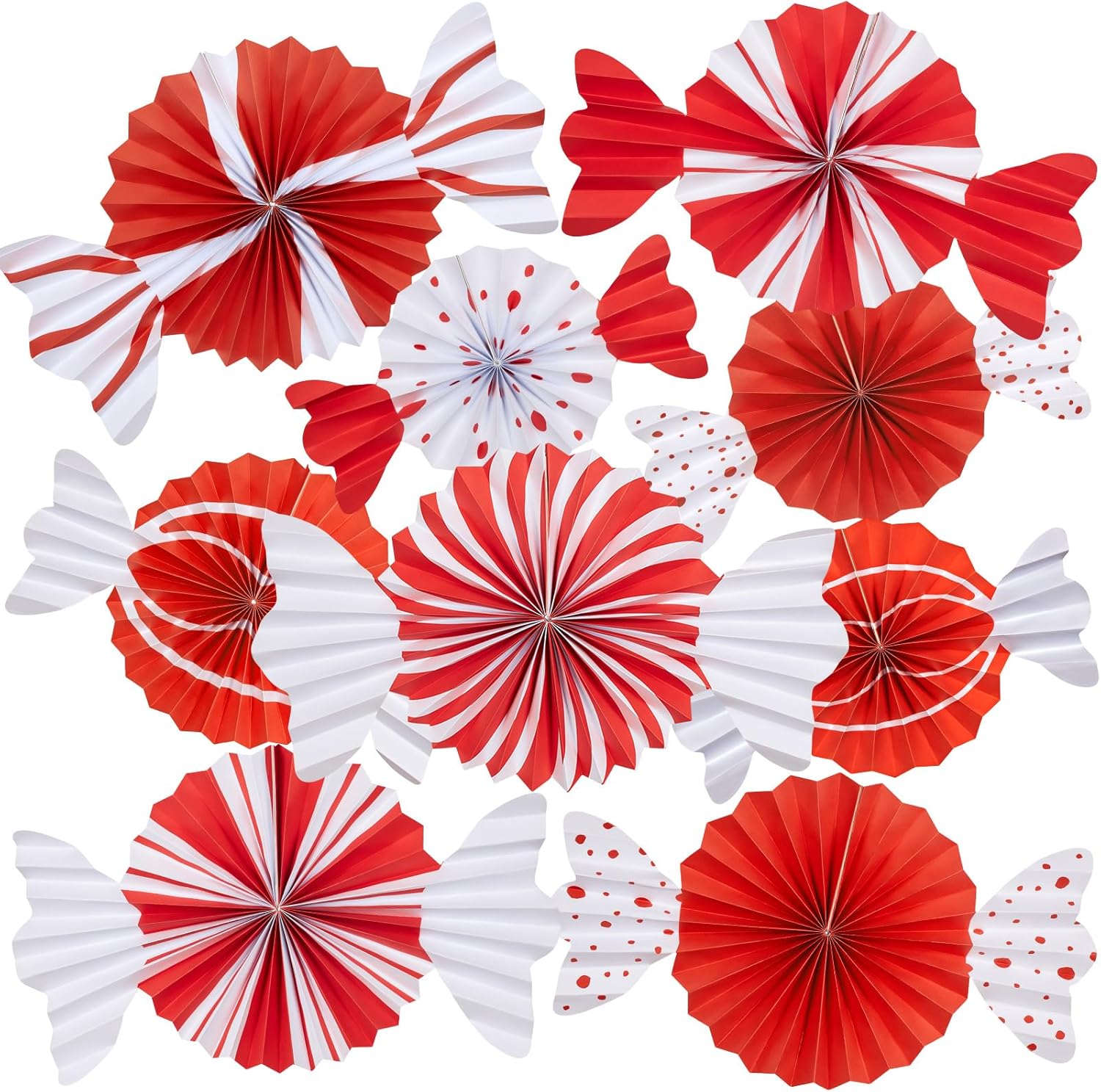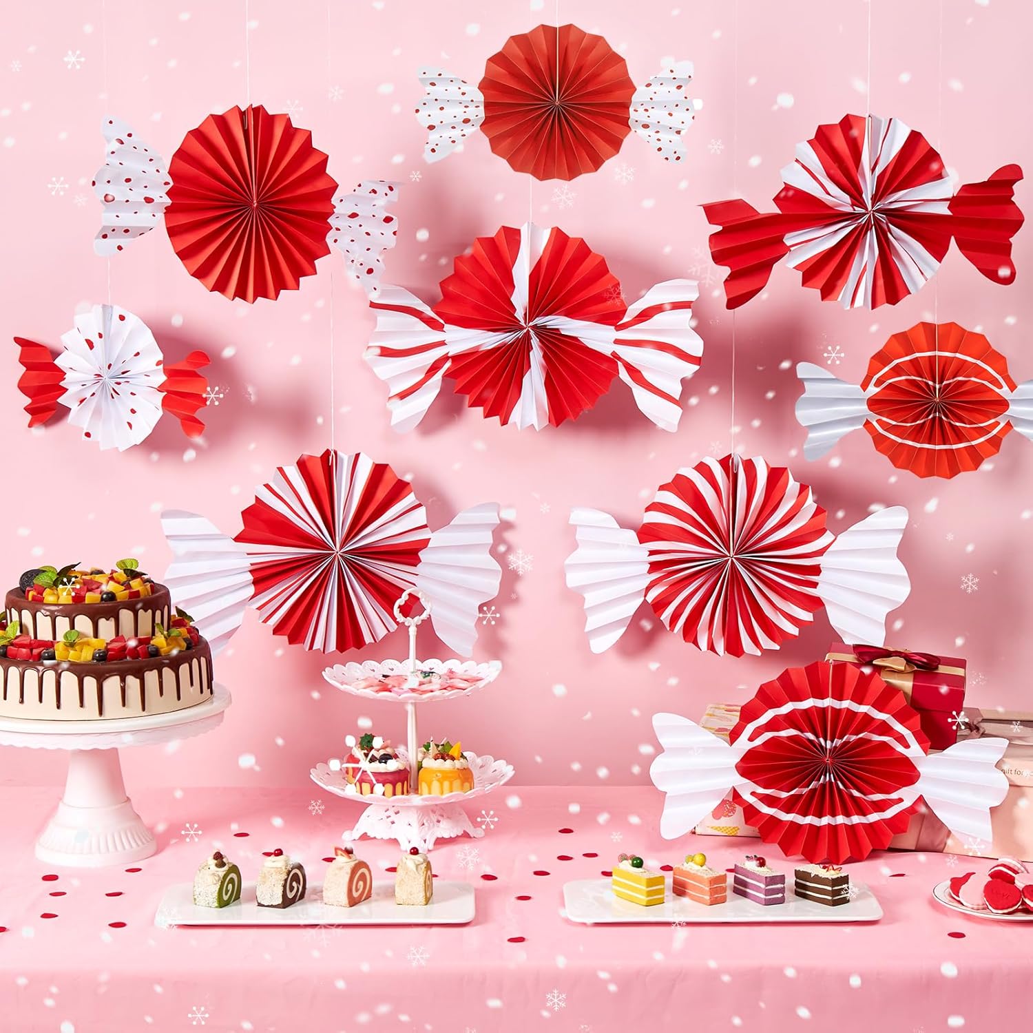 9pcs Candy Party Decorations Sweet Candy Hanging Paper Fans Hanging Decorations Christmas Party Ceiling Wall Garland for Candy Theme Birthday Baby Shower Sweet Shop Christmas